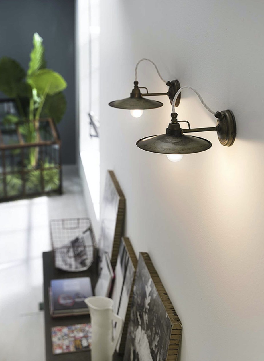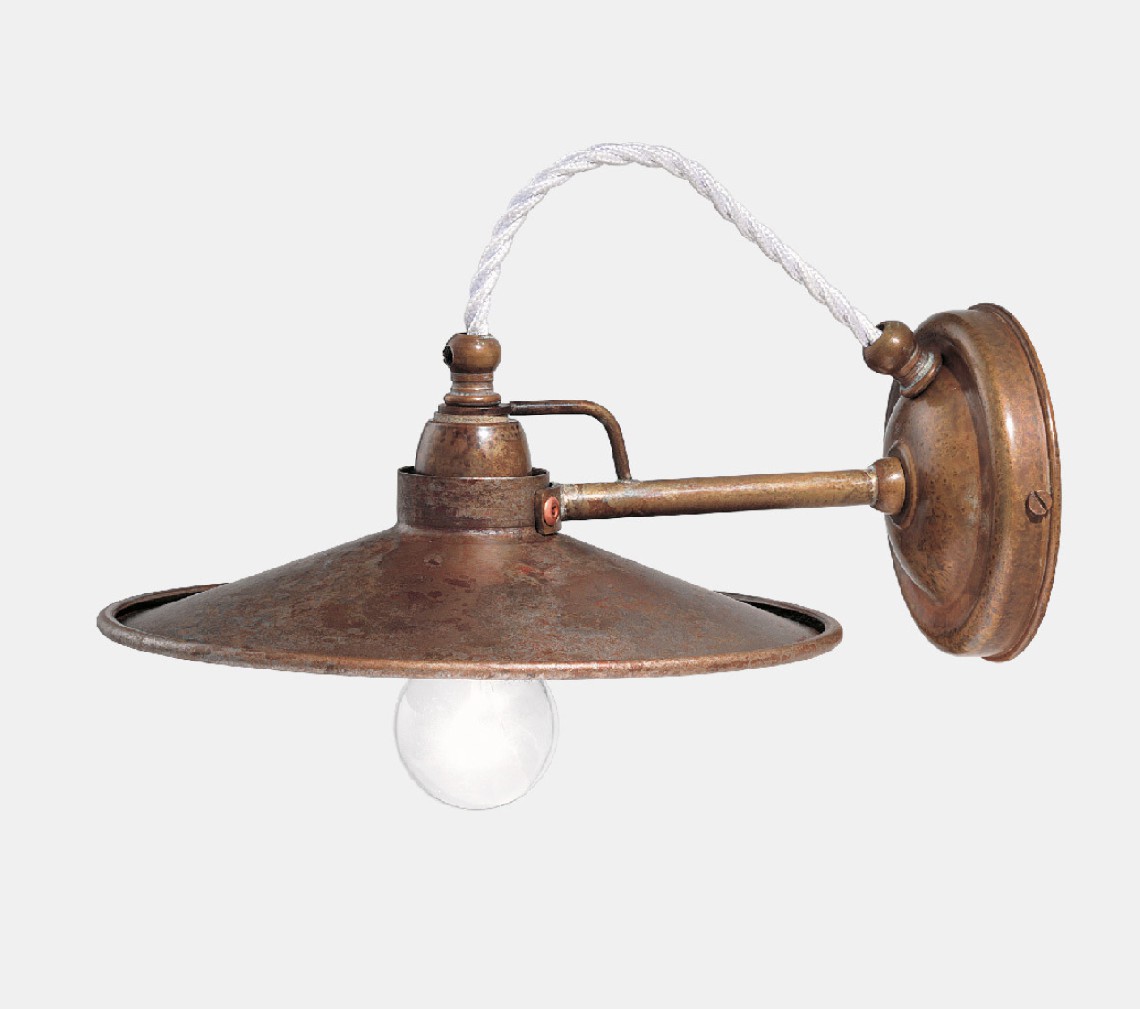 Un voluto richiamo all’arredo tipico di cantine e laboratori artigianali connota le lampade della collezione Cantina. Le forme essenziali sono la nota distintiva di ogni lampada, caratterizzata da un piatto levigato ottone o in ferro anticato. Prodotti moderni e versatili, che ben si inseriscono in differenti contesti. Disponibili in ottone (OO) o ferro (FF).