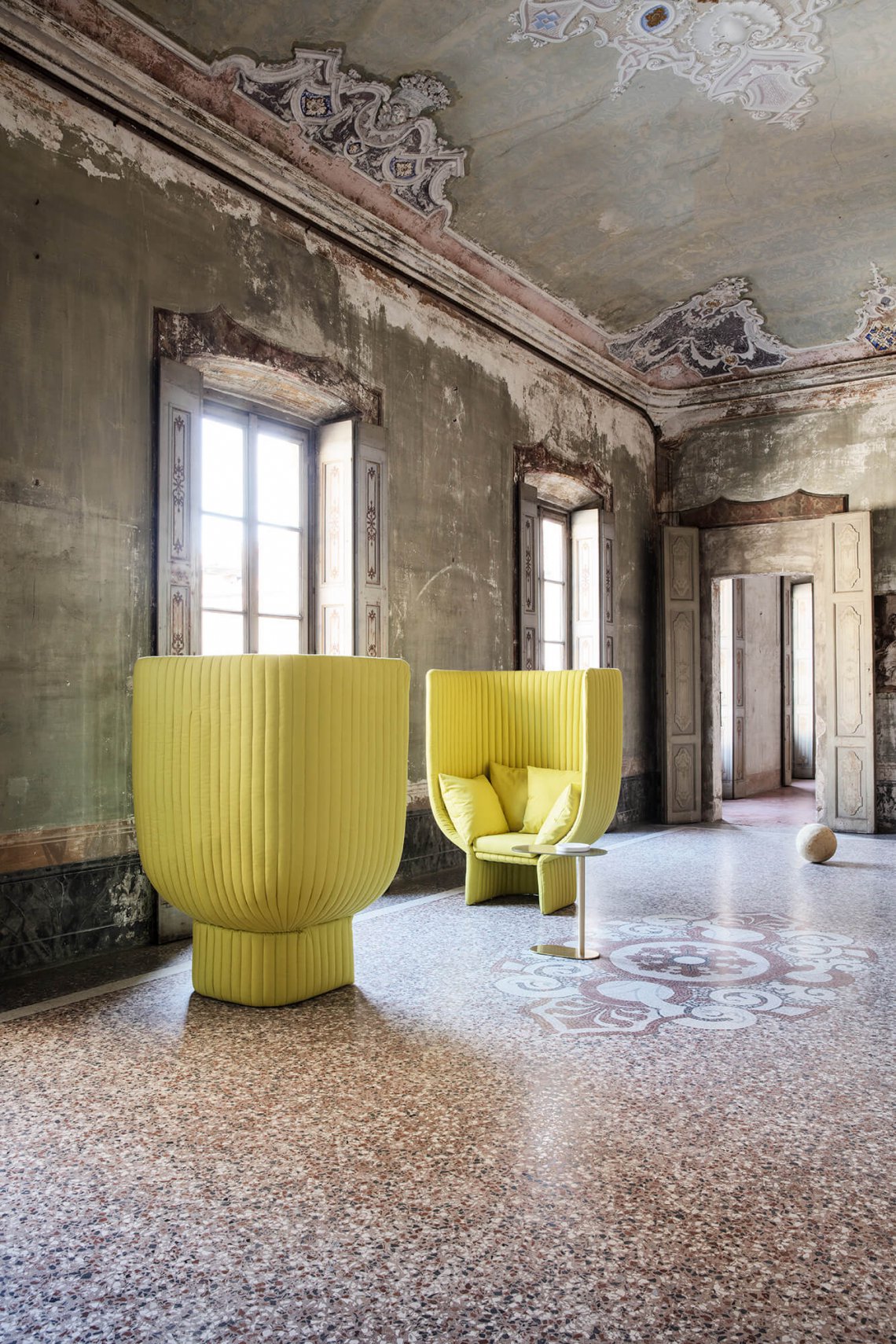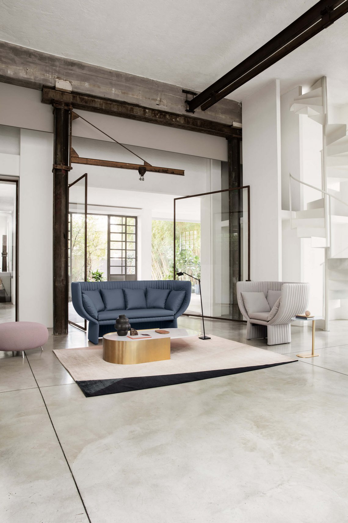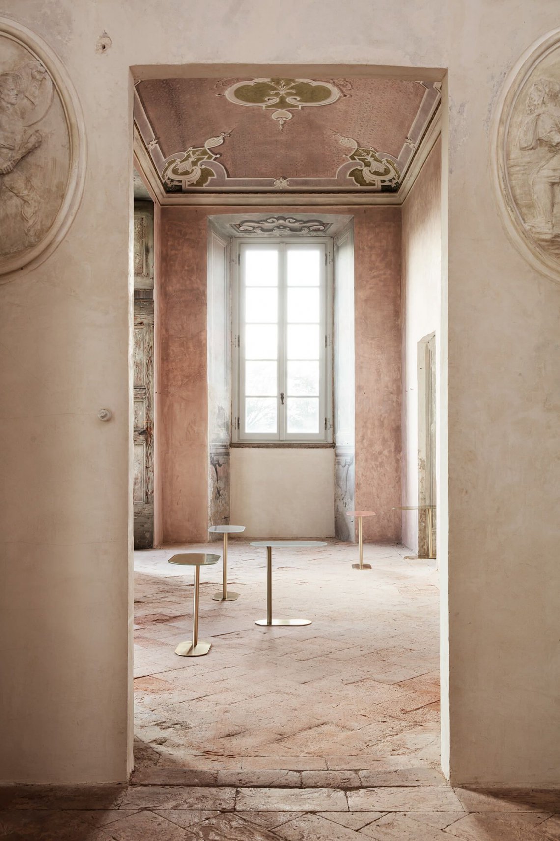 Corvetto is a minimal and functional object, slim but strong with an overhanging top that can be moved to offer occasional support to various activities and in different contexts. On its own or in small groups, it quickly organises the accessory and service space. The side table has its compositional harmony thanks to the similar shapes for both rounded faces: the compact base and the wide top.