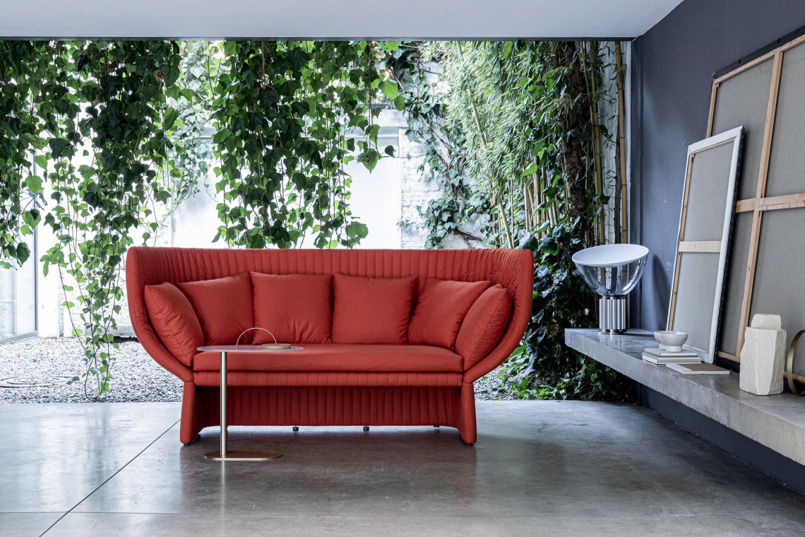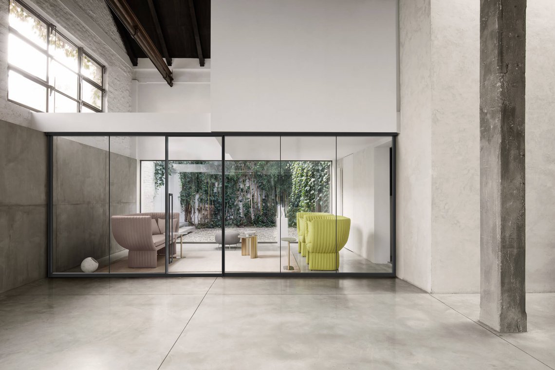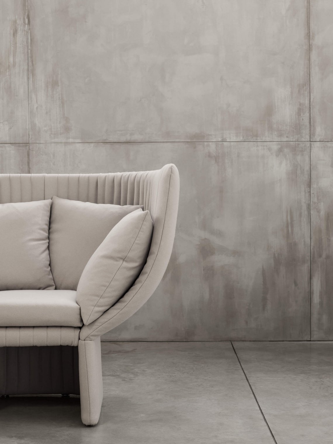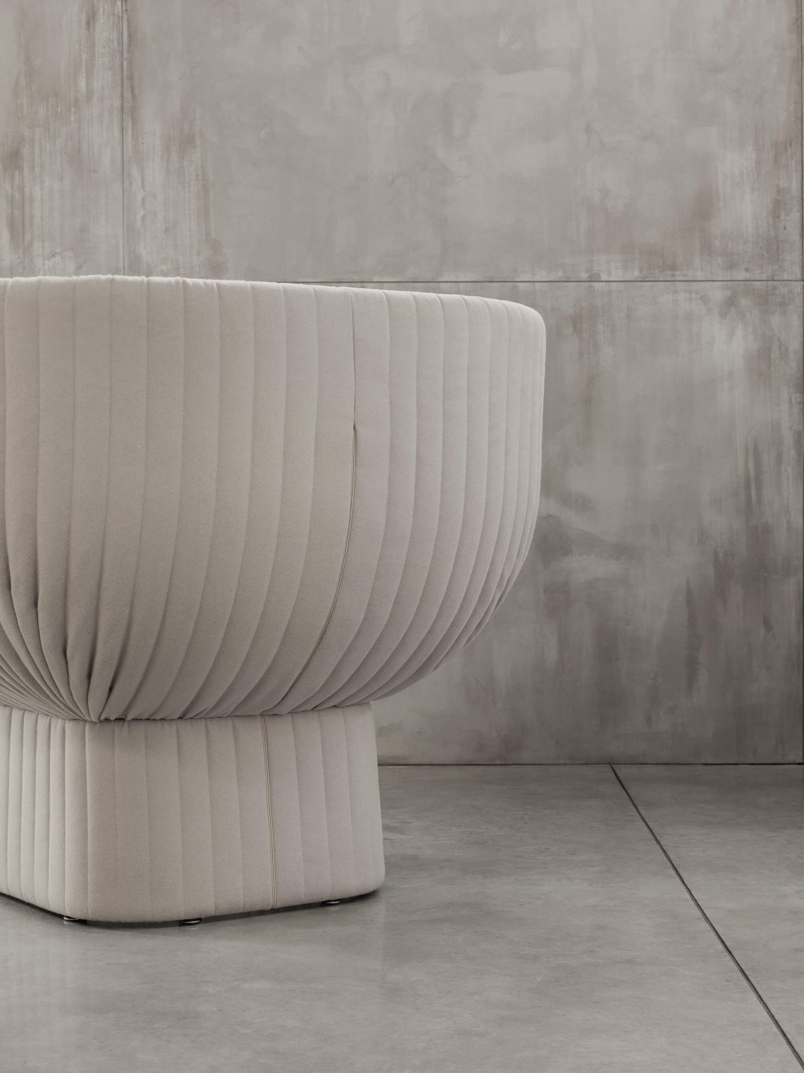 Ghisolfa is a range of sitting created for individual moments or private sharing. The high back armchair or the sofa when coupled at the front emphasize even more the privacy effect and a real protected area.