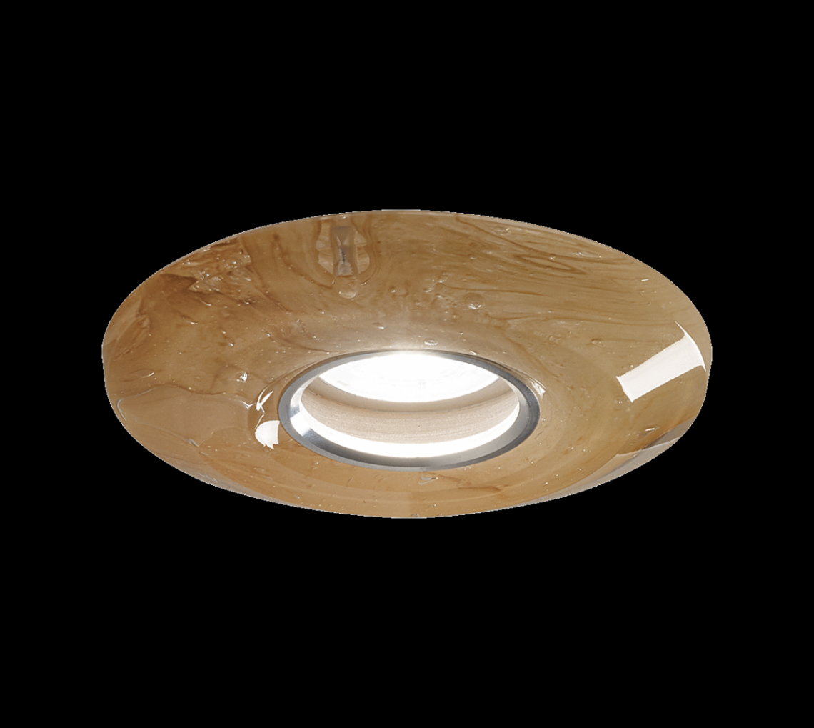 Spotlight in amber clear glass with mixed effect. Internal metal ring in chrome finish.