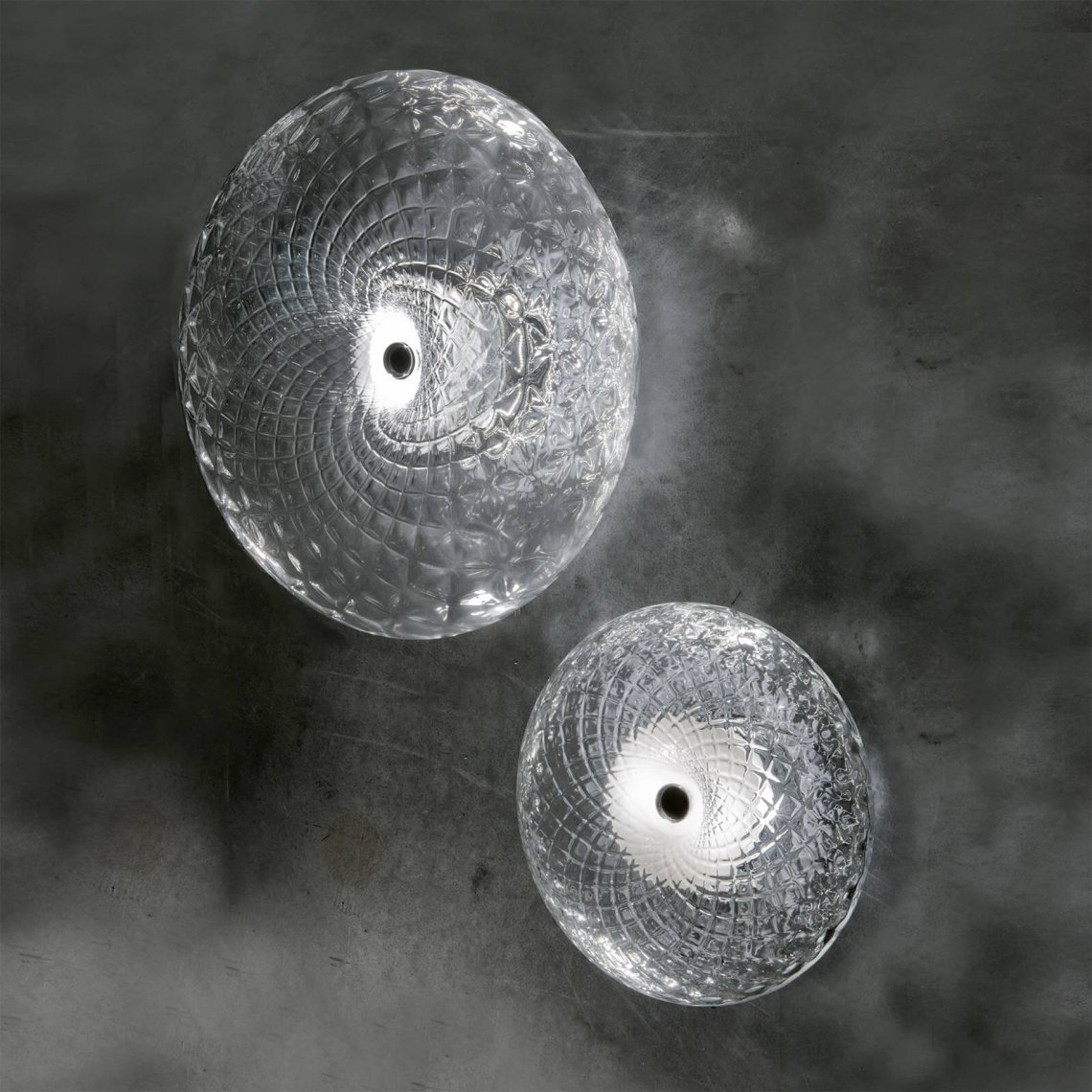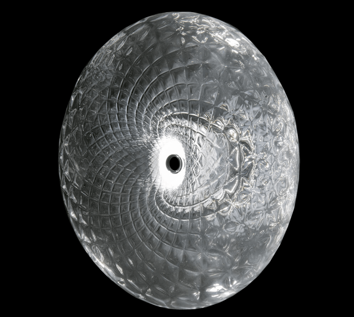 Ceiling lamp in transparent glass with chrome metal detail. Available in different dimension and colours. Incanto Modern Collection.