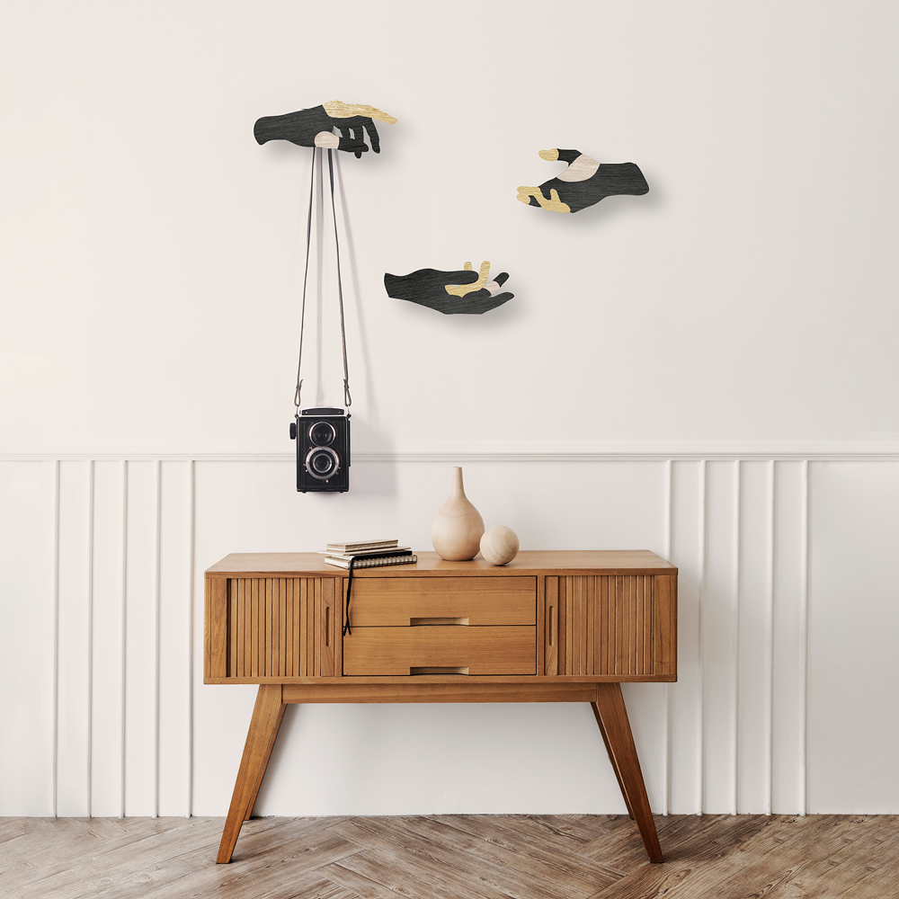 Ibride has collaborated with designer Elsa Pochat to create the "De Bonnes Mains" collection, a set of wall hooks in the shape of hands. Each of them adopts a unique position, recalling the gesture of a craftsman working the material to give birth to an object. By choosing this part of the body, the designer wanted to pay tribute to the craftsman, to his ability to transform raw materials, to the nobility of irreplaceable manual skills.