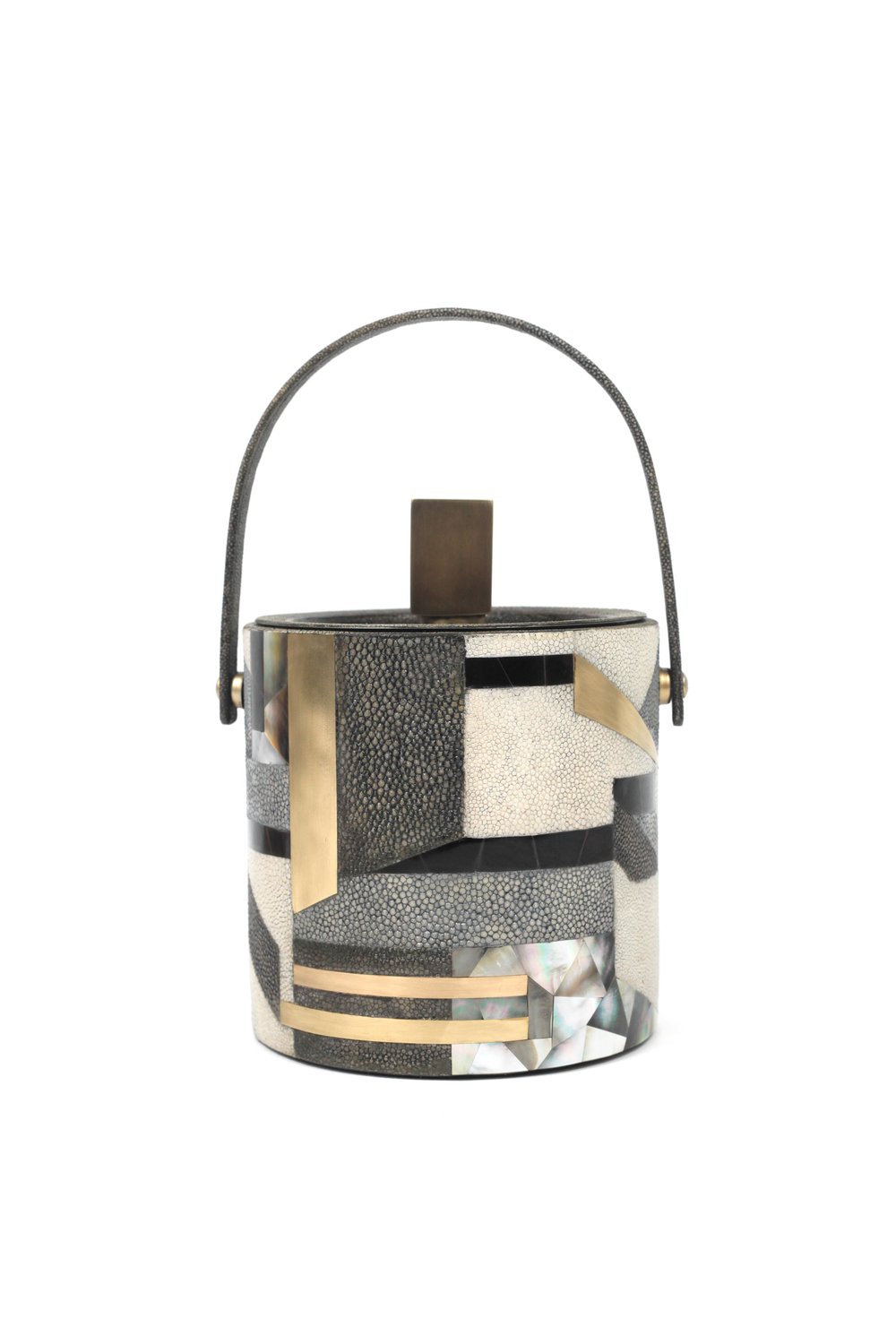 The KIFU PARIS Ice Bucket is the ultimate luxury bar accessory, inlaid in either shagreen, pen shell or a pattern. This piece comes with an ice thong.
