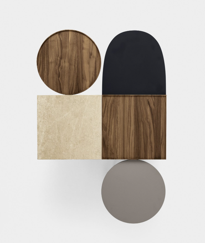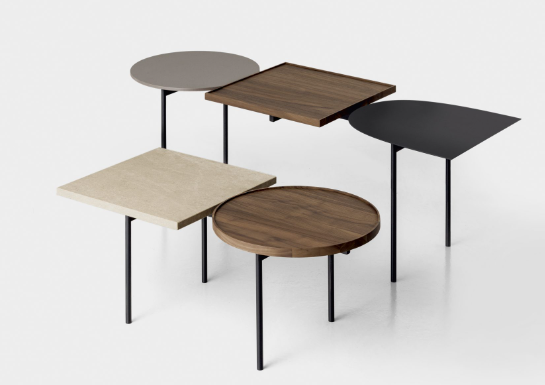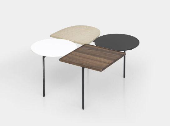 Constellations is Luca Nichetto’s tribute to the artists Joan Mirò and Alexander Calder and their meeting in Paris in 1928. The coffee table comprises a light and simple metal frame, on which a choice of squares, circles and semi-ellipses can be combined – inspired by Mirò’s conceptual shapes and Calder’s “Mobiles” – to create compositions of surfaces with different thicknesses and ?nishes. The effect is an abstraction of suspended objects: a constellation.