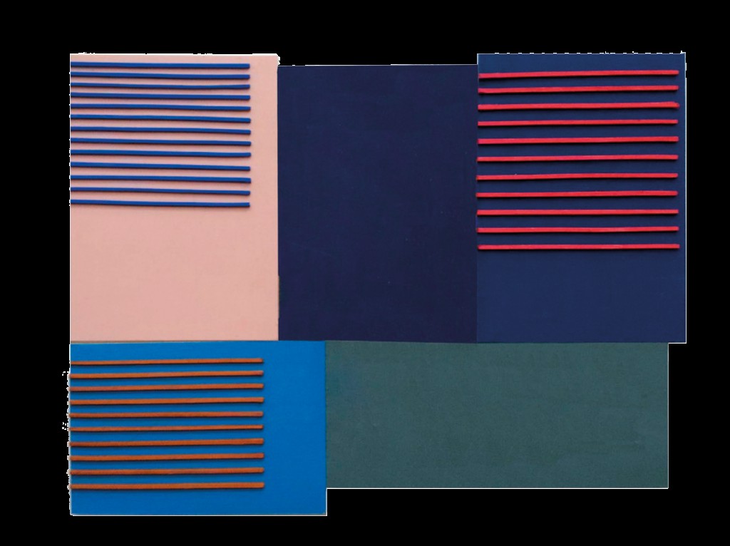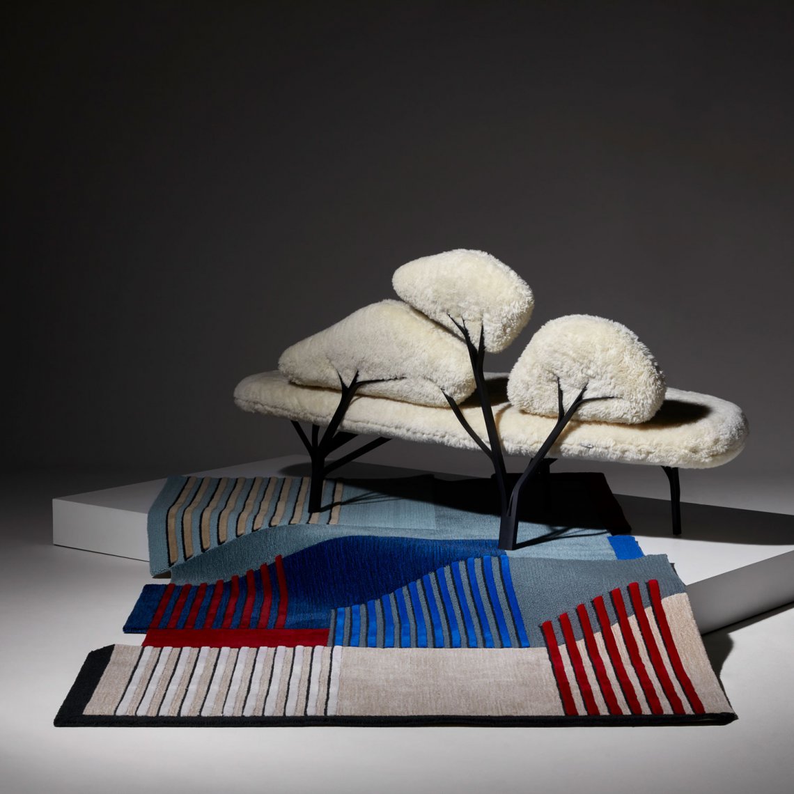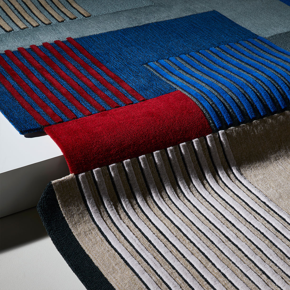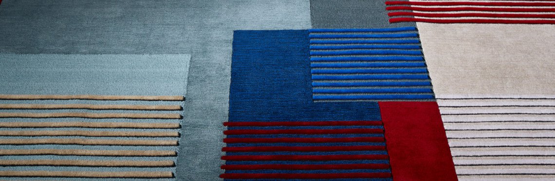 Flag is a rug built as an accumulation of superimposed colored shapes.