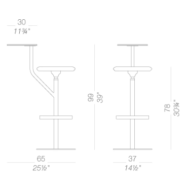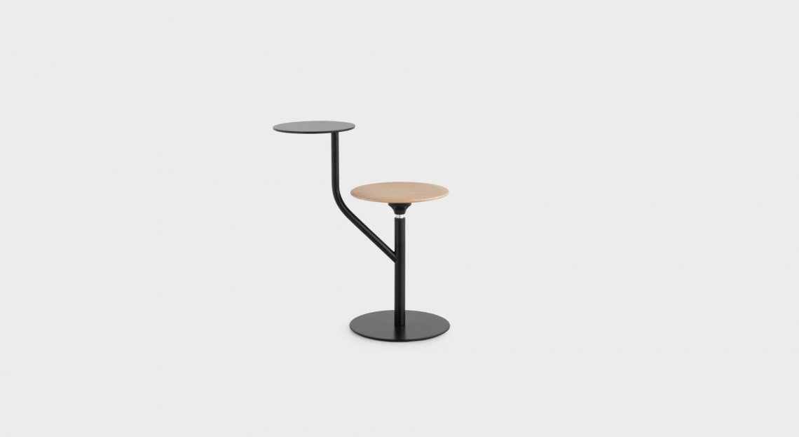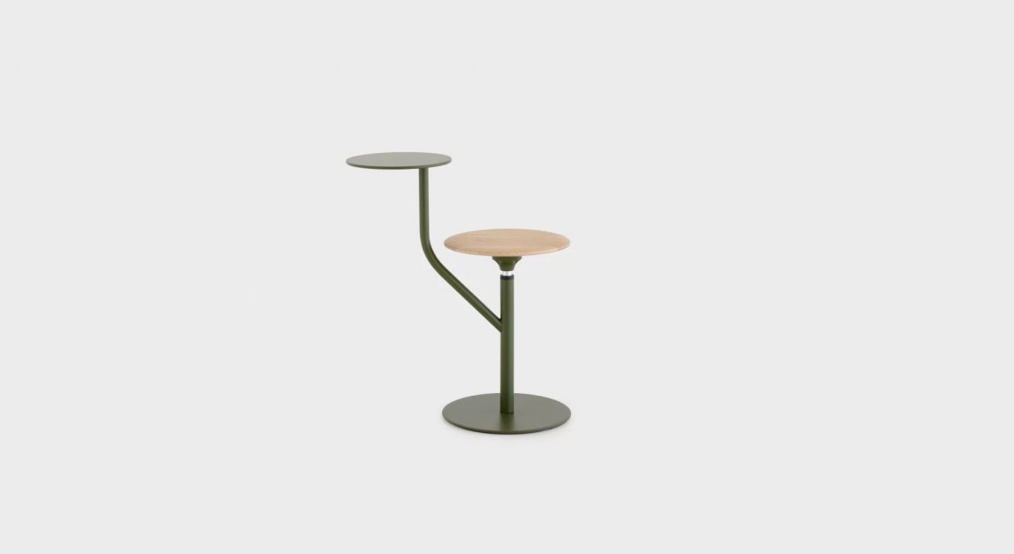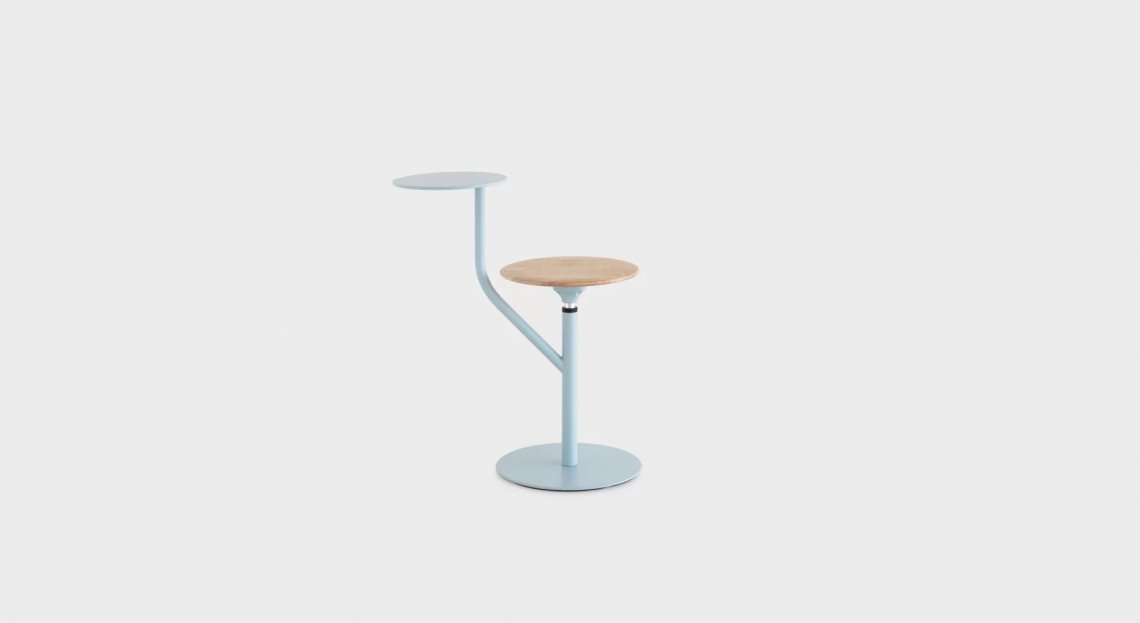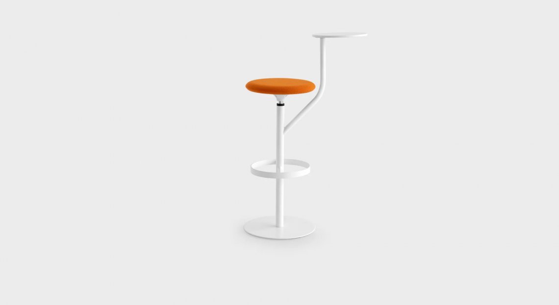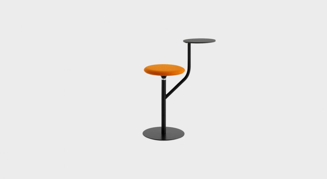 In un’unica linea, dinamica e minimale, due funzioni, sgabello e tavolino insieme. Si chiama AARON, doppia “A” nel nome, per sottolineare la generosità multi-tasking di un disegno che limita lo spazio d’ingombro e garantisce privacy e relax. Da uno stelo in metallo, germogliano un sedile imbottito e un piano d’appoggio girevole. Funzionalità ed eleganza in tempi di ritrovata apertura e riservatezza. Possibile il fissaggio a pavimento.