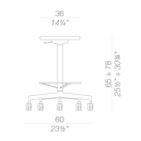 La leggerezza dello sgabello incontra la comodità della sedia: grazie a uno schienale mobile, questa versione di LAB con 5 ruote autofrenanti e altezza regolabile diventa un pezzo facile, funzionale e versatile.