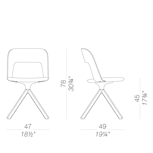 Una sedia con gambe in legno di grande effetto: in questa versione con il sedile imbottito, ARCO diventa un elemento d'arredo comodo e sofisticato.
