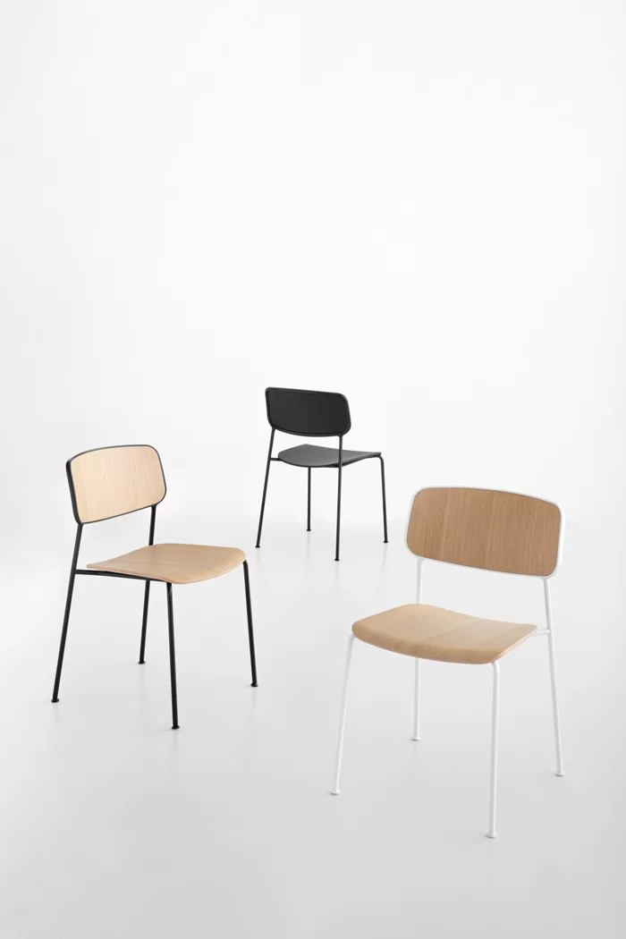 Ti siedi e pensi solo cose belle. E con la stessa felicità grafica, Hee Welling ha immaginato una linea continua, bianca o nera, che unisce ogni parte della nuova splendida KISAT. I materiali si alternano con virtuosismo tecnico, e lo schienale, inserito in una cornice di alluminio pressofuso, diventa una seduta di assoluto comfort, per trasformarsi nelle quattro basi d’acciaio inossidabile verniciato a polveri. Spalliera e seduta sono in legno di rovere o rivestiti di tessuti di vari colori. Impilabile, versatile, questa sedia infonde eleganza e scioltezza a ogni ambiente, dall’ufficio alla ristorazione, alla casa, al nostro cuore.