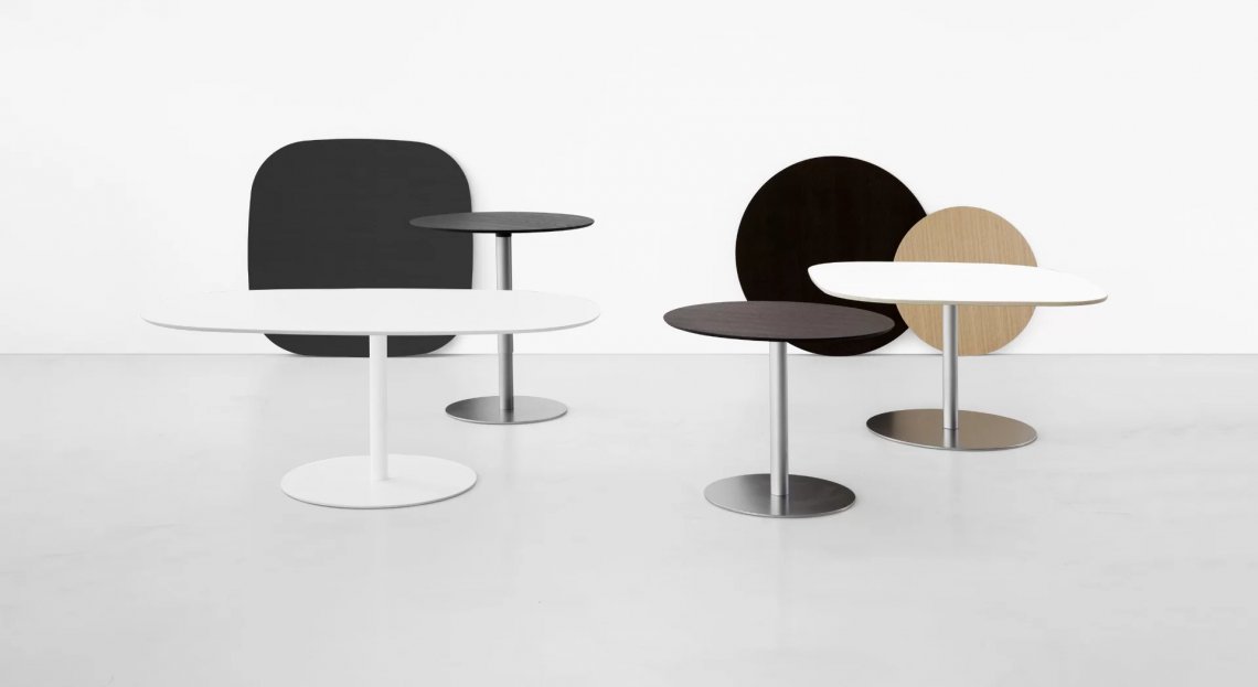 Quadrato o rotondo, il piano del tavolo RONDò poggia su una colonna slanciata su base rotonda, regolabile in altezza, per dare vita a un elemento d’arredo originale e ricercato.