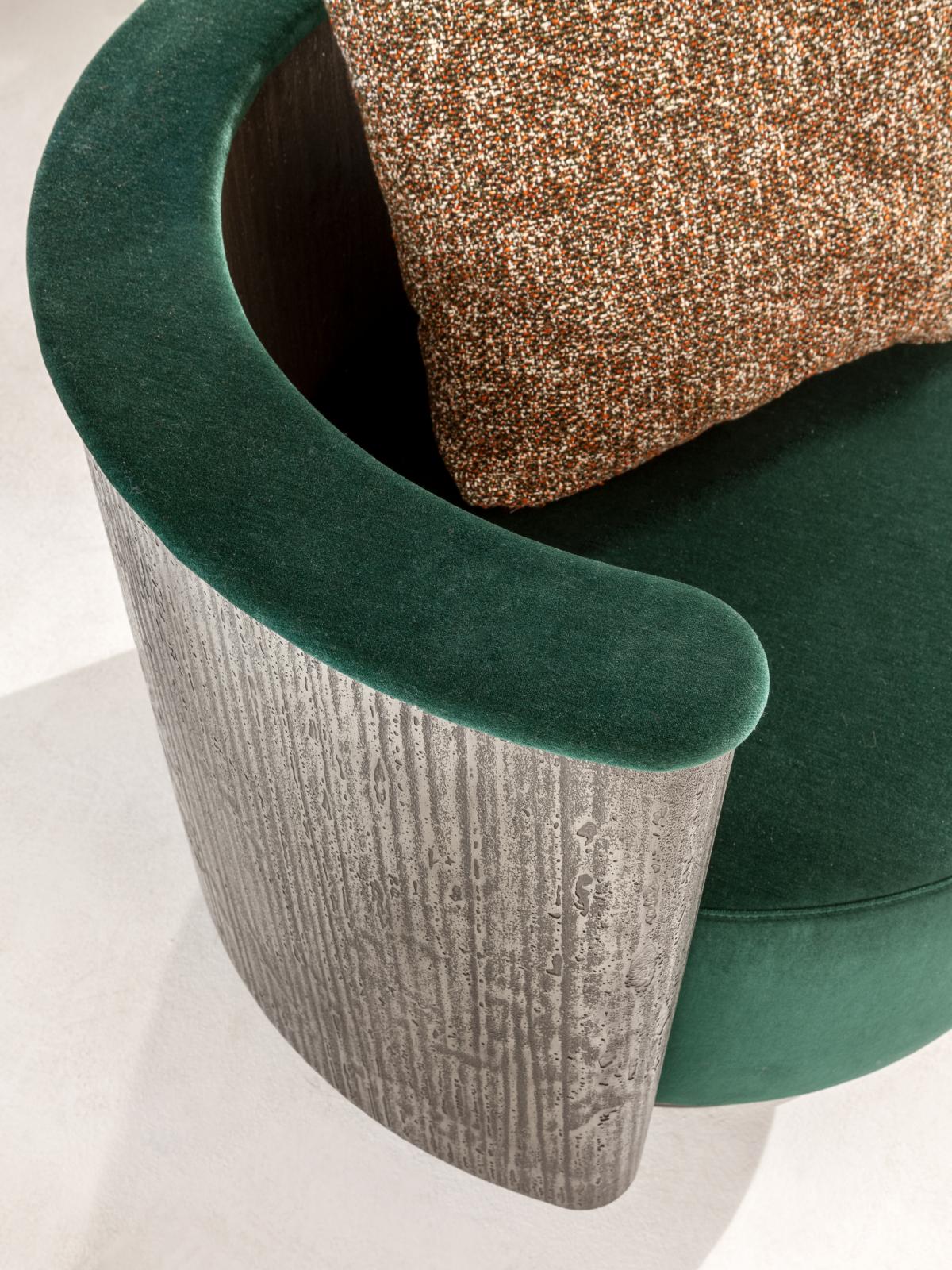Padded seat and backrest made of a soft cushion. Both available covered in leather, velvet or fabric.