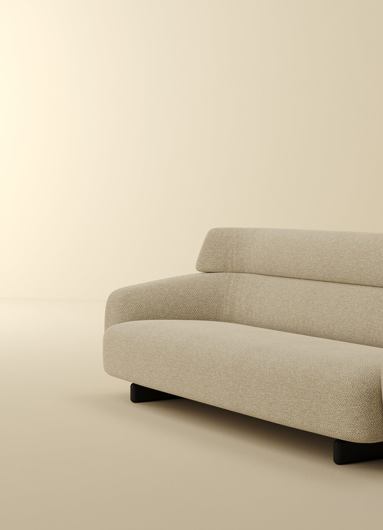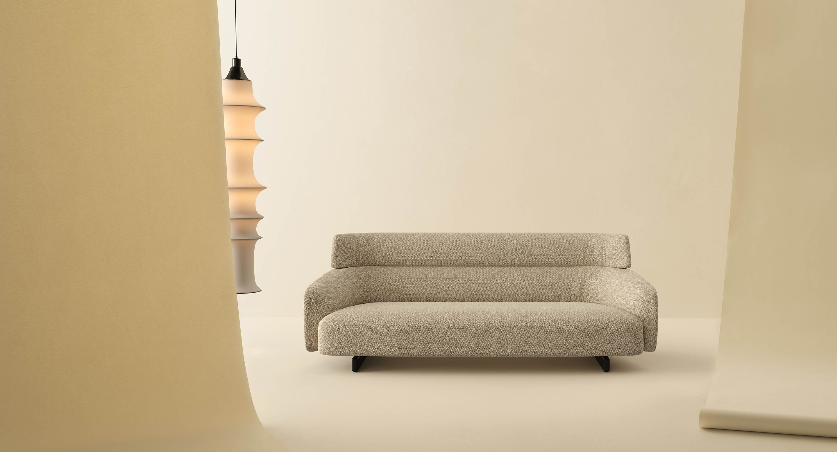 Sophistication and craftsmanship come together to give life to a new sofa designed by Roberto Lazzeroni. Ares is a visually striking piece of furniture, ideal for those who desire refined and extremely elegant pieces. Characterised by an unusual style, Ares is defined as a sofa beyond conventions, where the significant height of the backrest, which envelops the seat with its curvilinear shape and lowers to form the armrest, gives the sofa a majestic appearance. Available in multiple sizes such as 2 or 3-seater linear sofa, or in the modular version with different elements including chaise lounge modules, it stands out for the particular craftsmanship of the feet: like two long traverses, they run on the lower ends of each element, becoming a flat section when viewed laterally. Resting on a refined base made of thermotreated oak or stained ash wood, Ares combines rigid elements and significant padded cushions to skilfully blend comfort and functionality.
