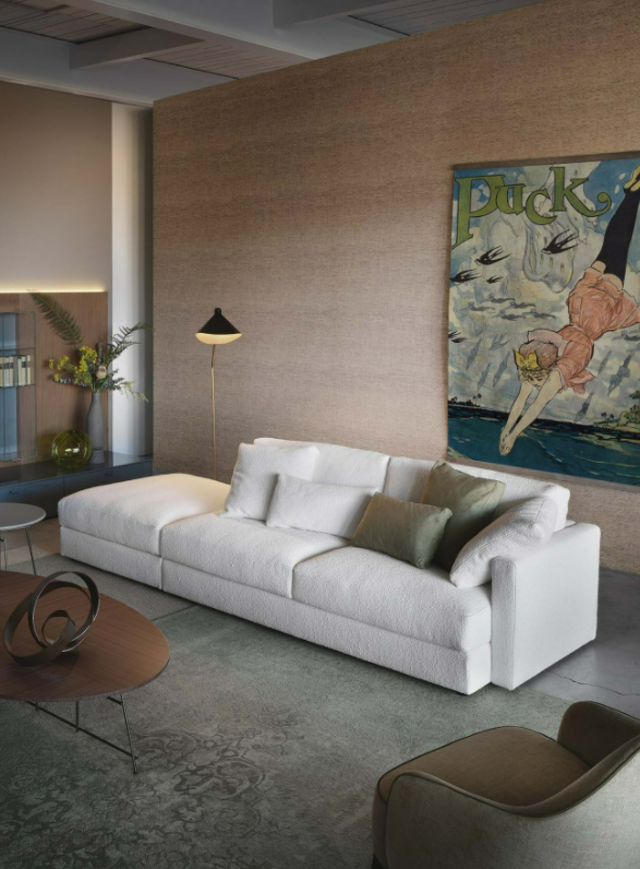Glee is a modular free-standing sofa that stands out for its essential lines and soft volumes. Versatility is its distinctive trait: Glee is able to fit into any space and dialogue with any furniture style adding a touch of newness and contemporaneity to the whole space.