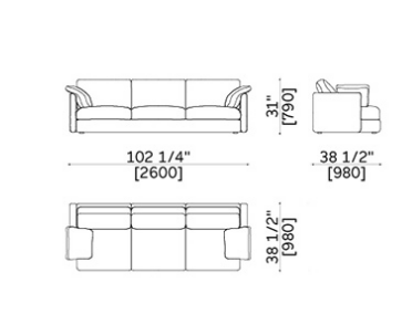 It is possible to choose the width of the central body, of the two terminals and of the pouf with a 5 cm step between the maximum and the minimum size of these sofa’s elements, in order to fully adapt them to different functional and aesthetic needs.