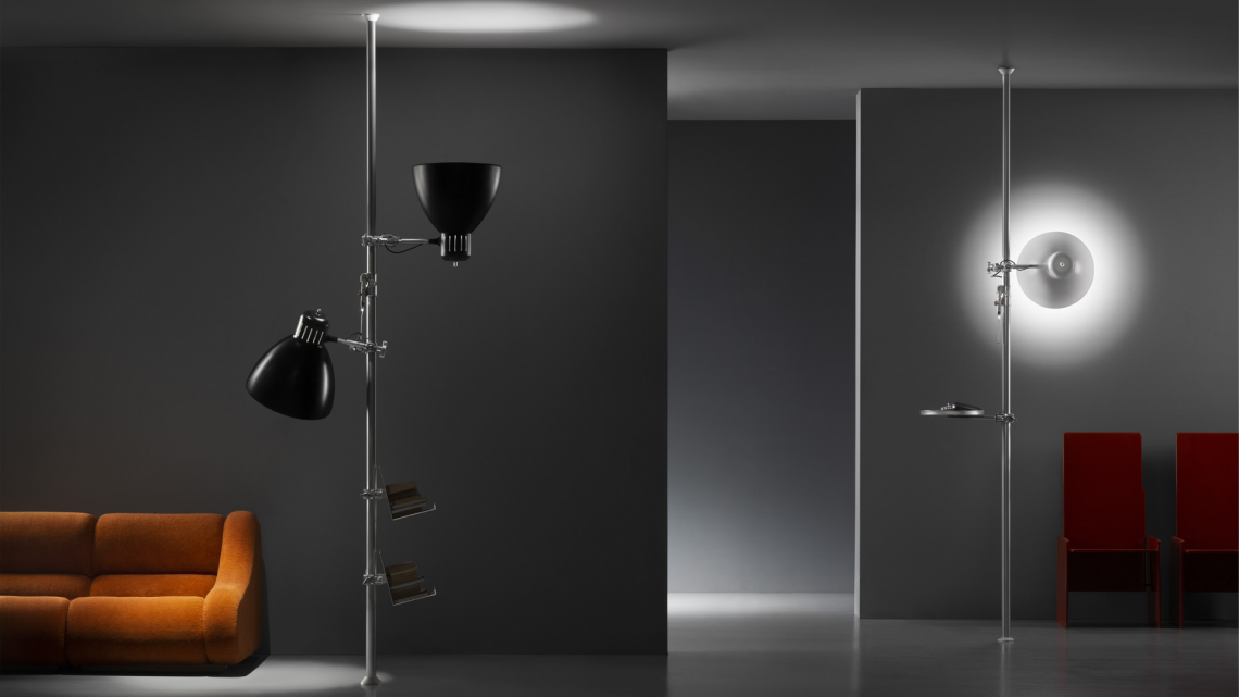 JJ Family’s newest size and typology. Adjust-able “Grip lamp” orientable in all directions. The new JJ BIG – Grip allows different applications (table, floor, wall or ceiling) thanks to the included “Super Clamp” (an attachment that allows you to connect the lamp to a wide range of locations with either round and rectilinear profiles) and using design accessories such as “Autopole” (extendable floor-ceiling tension column in anodized aluminum) and the “Grip Mount” (wall/ceiling attachment in polished anodized aluminum). Matte lacquered aluminum diffuser available in white, black, amaranth red, mica blue, sablé grey and rust brown. Interior in white lacquer. Polished anodized aluminum structure. Dimmable LED light source (user replaceable). Dimmer on cord (push-dim).