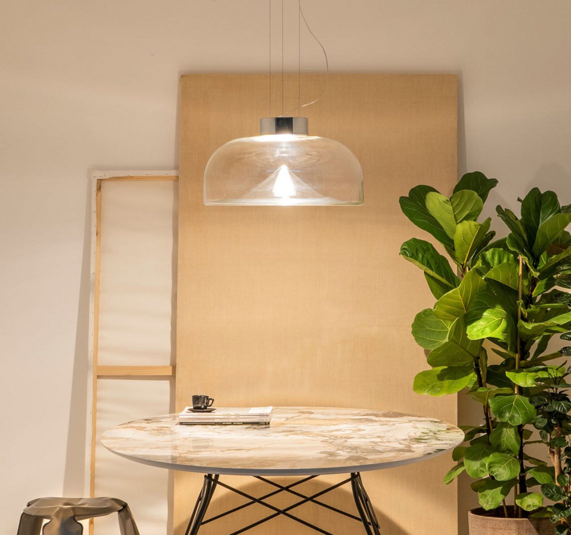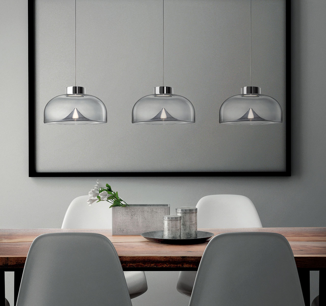 Aella is the ‘whirlwind’, embodied by the dynamic movement captured in its handblown glass diffuser. Emanating from the single point, an evanescent light cone grows to create sinuous patterns and harmonic reflections.