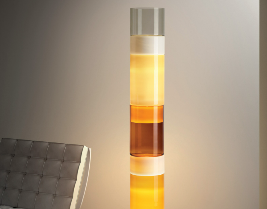 Disegnata da Rockwell Group, Stacking è una lampada da terra creata utilizzando l’idea di cilindri modulari in distinte combinazioni di colori e dimensioni. Questi moduli in vetro soffiato a bocca sono realizzati con una tecnica tradizionale veneziana chiamata “incamiciato” nella quale un Maestro soffiatore utilizza più strati di vetro, ciascuno con trasparenze e proprietà diverse.