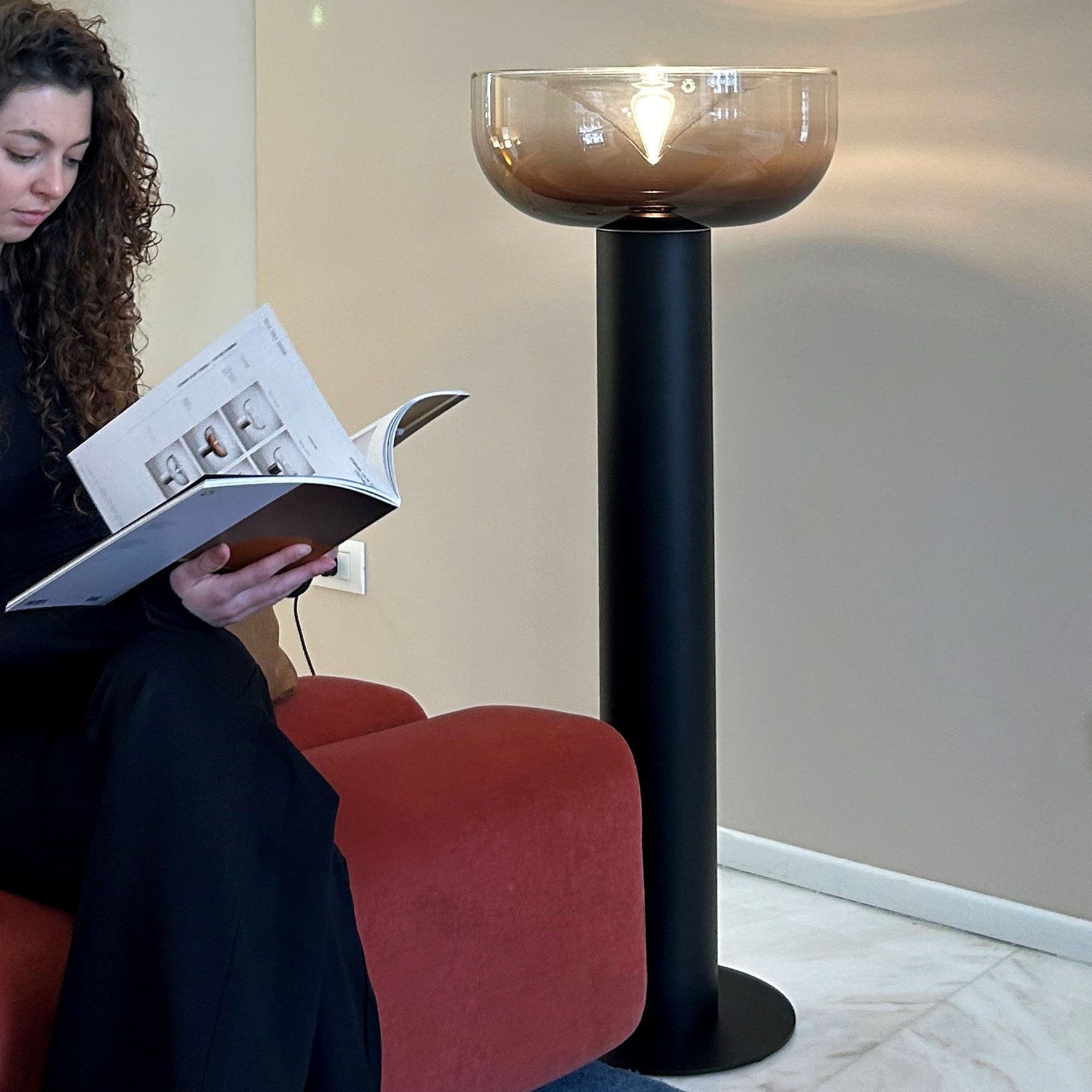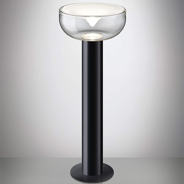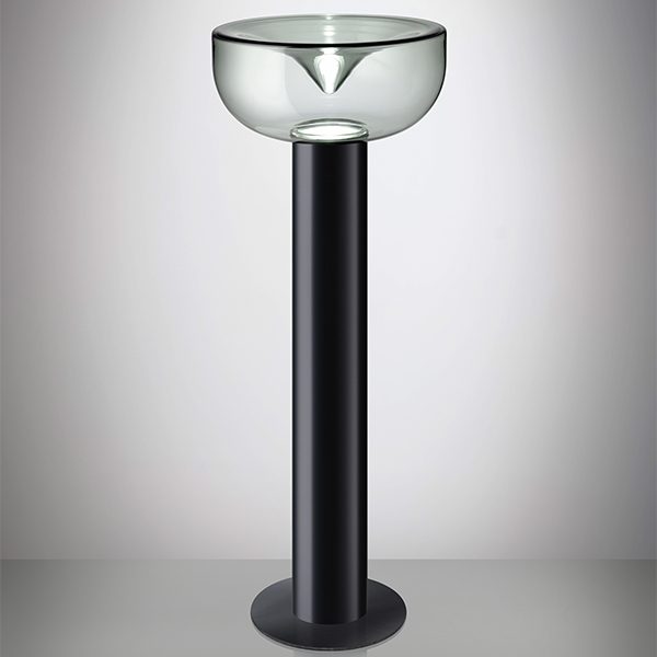 La lampada da terra AELLA TR 45 rappresenta l'ultima incarnazione dell'iconica collezione AELLA, frutto delle menti creative dei designer Renato Toso e Noti Massari nel 1968. Con un corpo in alluminio estruso nero opaco più lungo rispetto alla versione da tavolo ( ?32 cm – H 94,7 cm ), questa lampada si distingue per la sua imponenza, conferendo una presenza ancora più maestosa e stabile. Il diffusore in vetro soffiato ( ?45 ), disponibile in tre colorazioni – borgogna sfumato, fumé o trasparente con macchia bianca - si integra armoniosamente con la base in nero opaco offrendo un'estetica unica e personalizzata per ogni ambiente.