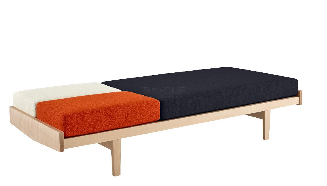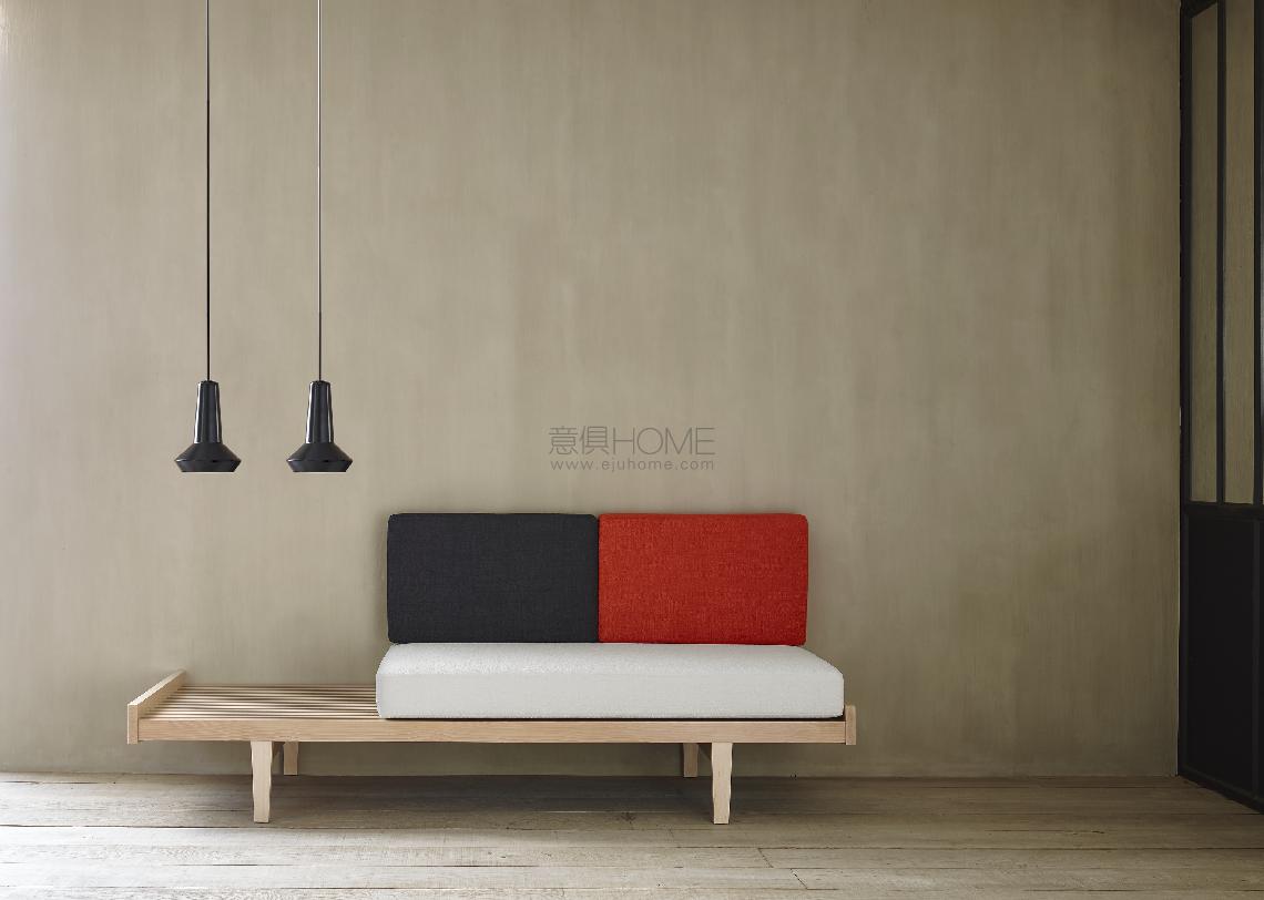 A revolutionary piece on the French market of the early Fifties, the minimalist elegance of the Daybed banquette has every chance of achieving even greater success today, given that views on such economy of form have been developed over decades. A new feeling for natural materials such as wood, a return to a form of 'low consumption' centred on just the right products, those which are essential, nostalgia for the Fifties and a return to favour of Scandinavian design are just some of the factors which make Daybed such an attractive proposition today. Designed as a small settee with an integral low table, it becomes a large banquette seating 3-4 persons (or even an occasional bed for one) when one positions the two back cushions on the low table as an extension to the seat cushion.