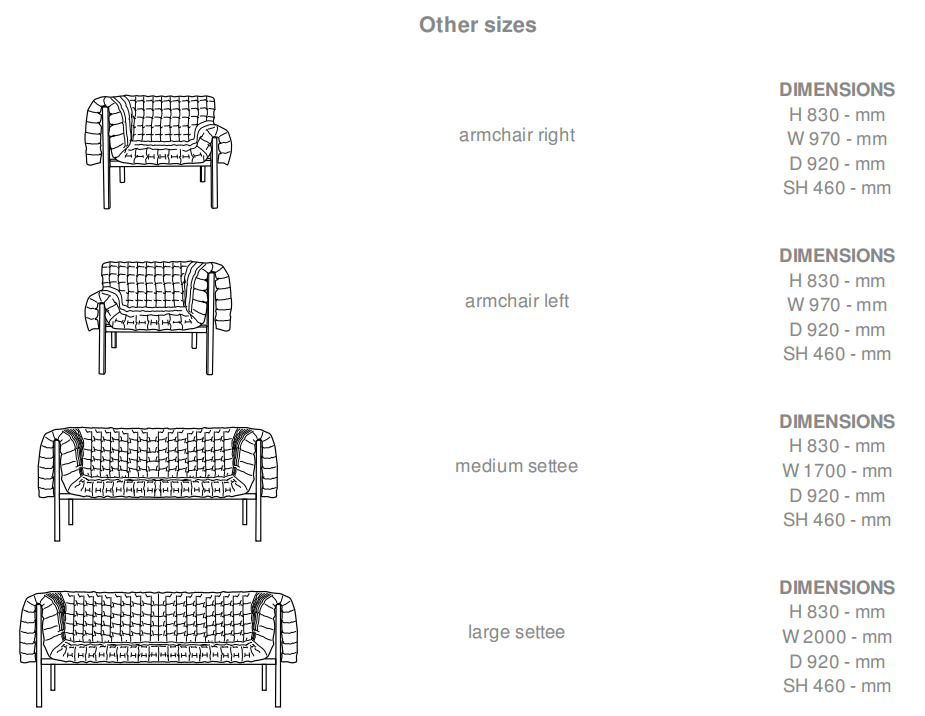 For Ligne Roset, Ruché (the name refers to a gathered or pleated fabric which serves as a decoration on a piece of clothing) brings together the unusual and the traditional. The unusual thing about this piece is its solid wood structure, and the great traditional element: the quilting, the very heart of its savoir-faire. Its rangy uprights and the undulations of its duvet combine to produce a harmonious union of rigorous straight lines and soft, welcoming curves. Slender and fine, Ruché is nonetheless soft and welcoming. We might also add that the very design of Ruché offers a collection of seating which allies comfort and compactness: its depth is only 92 cm and the length of the various pieces varies between 170 and 200 cm, ideal for small apartments. Finally, its seat height (45 cm) will appeal to a broad clientèle, not least those who utterly reject seats which are too low. The 2 settees are also available in a low-backed version (65 cm instead of 83 cm), with a lower seat (38 cm instead of 46 cm), a greater depth (101 cm instead of 92 cm) and a backwards sloping seat/back with integral lumbars. They therefore offer the twin advantages of remarkable comfort & the look of a true domestic settee, bringing it far from the 'banquette' look. Its lower lines enables it to elegantly integrate into all spaces, even the very smallest.