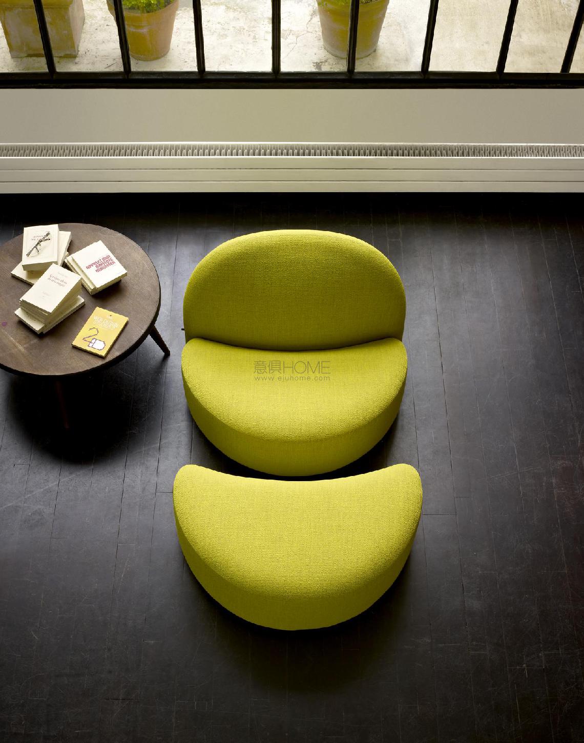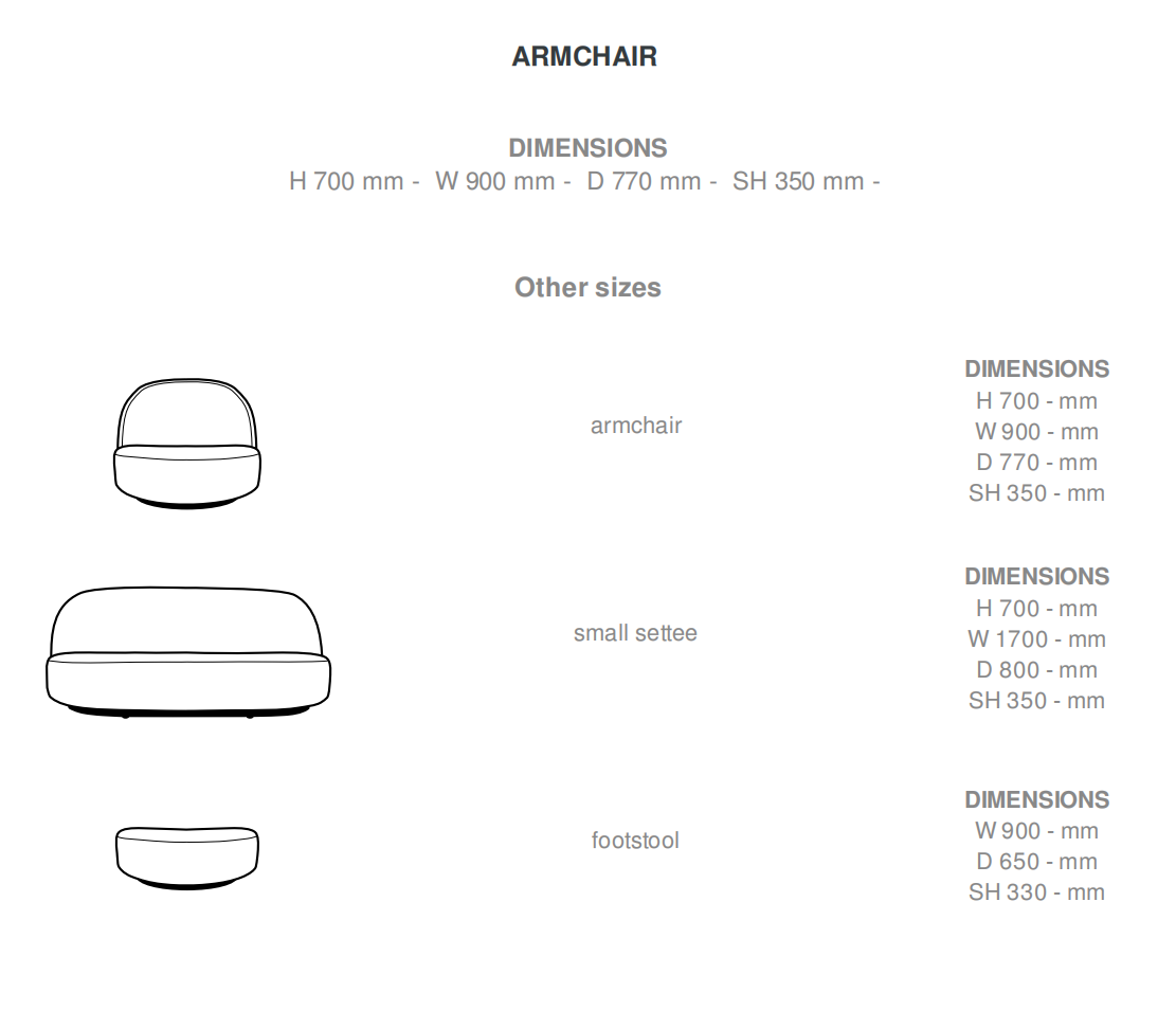 The Elysée collection of settee, armchair and footstool was reconstructed by Ligne Roset using plans in the archives of Pierre Paulin. If the aesthetics and the volumes of the original have been scrupulously respected, the comfort of the seats has been significantly improved through the use of the new materials now available and the highly specialised expertise of Ligne Roset in the field of multi-density foams and their assembly. The compactness, graphic purity and visual lightness of the Elysée seating enables them to fit perfectly into small spaces such as city apartments.