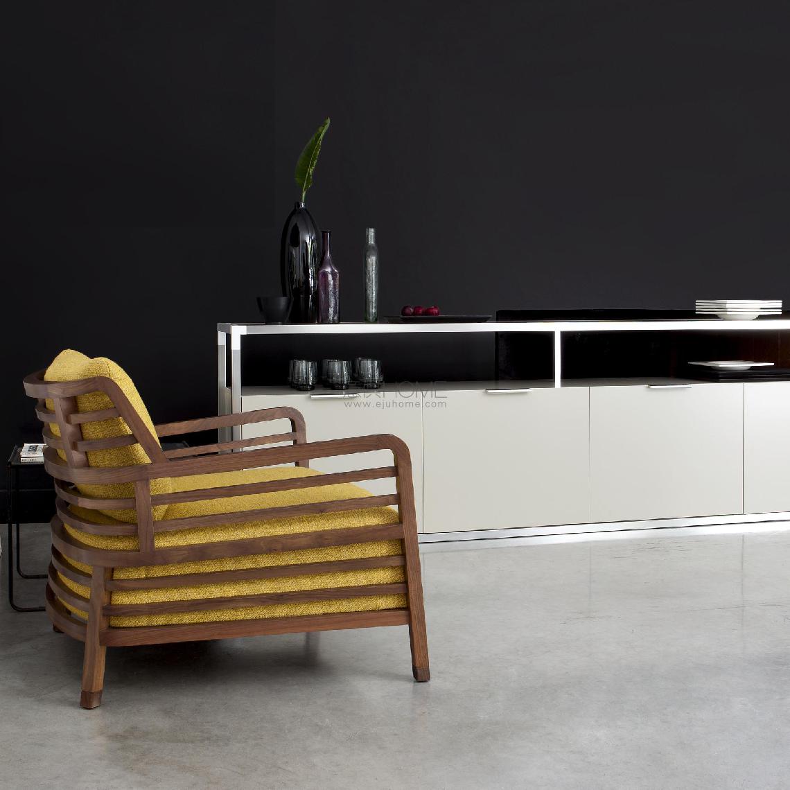 Comfortable, easy on the eye and very compact – it fits into a 75 x 75cm cube – this armchair will fit perfectly into all styles of interiors. Its structure, a functional carcase of a type which is normally concealed, becomes not only visible but so much more, its principal aesthetic attribute. In 2019, the enduring success of the Flax armchairs since their launch in 2010 has led Philippe Nigro to complement them with a settee with the same construction. Perfectly proportioned, it offers two generous seat places whilst occupying the least possible space: with a depth of 80cm, it is only 135cm wide! The one- piece seat cushion reinforces the impression of discreet elegance. Ideal for small spaces, its walnut frame nonetheless lightens its visual presence still further. Just like the armchair, the settee also offers a choice of two heights of back cushion. As a counterpoint to contemporary surroundings, its look back at past expertise and the vibrancy of its natural walnut bring a touch of warmth.