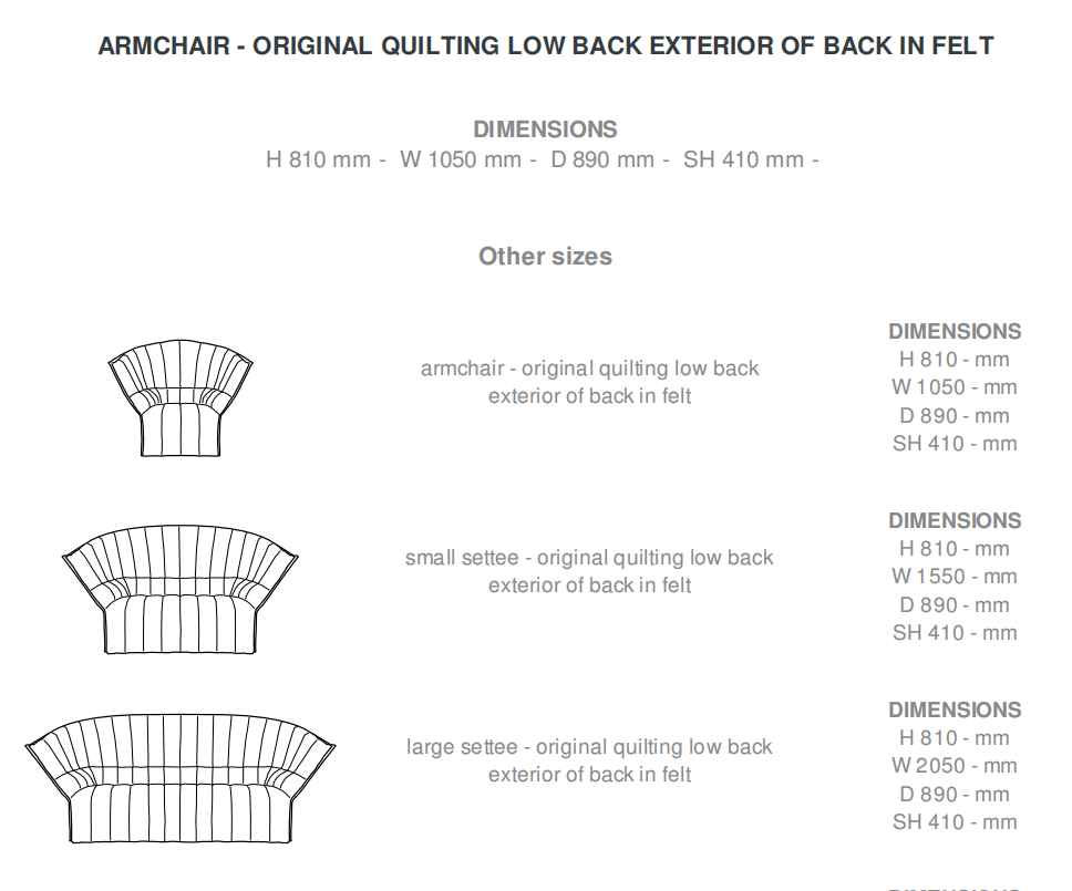 In 2017, Mo?l celebrates its 10th birthday by complementing itself with Mo?l 2, which adopts a new covering material for the corolla of its back : a 5 mm thick wool felt, available in a choice of 5 colours : anthracite, blanc mélangé, gris, terra cotta and moss. In addition, the seat and the interior of the backrest of Mo?l 2 are now available in 2 versions: - the usual Mo?l bands of regular vertical quilting, or - a special new style of quilting in tighter bands of quilting with interrupted stitching, creating a dynamic rhythmic effect. Mo?l 2speaks directly to all those who live in a natural, casual style and whose wish is to create a warm, intimate living space in which to receive friends. Its very high degree of comfort is affirmed by its softly rounded lines which combine to create a convivial space - and which almost make one forget that it bears no resemblance to any other seat.
