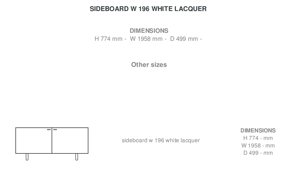 CONCEPT : first launched in 2008, the Coplan sideboard is being updated for 2016. The way in which its two coplanar doors open has been retained : side by side when closed, they pivot on opening and slide one in front of the other. Since there is no clearance required when opening, one can have a 200 or 230 cm long sideboard with just 2 sliding doors instead of 3, 4 or 5 hinged doors. The gain, aesthetically speaking, is one of simplicity and purity of line. In addition, the lines of the Coplan 2 sideboard have been lightened and new materials (walnut, ceramic stoneware) have been brought in to complement the existing lacquer finish. QUALITY OF MANUFACTURE & NEW FINISHES: the sides have been slimmed down from a thickness of 38 mm to just 16 mm. The tops have been slimmed down from 38 mm to 12 mm. The original finish of satin white lacquer is still available; however, it is now possible to associate this with a top in white, white marble- effect or metallic anthracite-coloured ceramic stoneware. Coloured to its core, ceramic stoneware offers a surface which is 30 % harder than granite. Its properties of resistance to scratches, stains and heat shocks are exceptional, making it particularly suitable for use as a sideboard top which will be called on to accommodate a whole range of different items. A new finish has also been added: walnut veneered doors with 45° fern motif and walnut veneered sides with vertical grain. In this case, the top is offered in either chocolate lacquer or the 3 ceramic stoneware finishes. The base is in white lacquered steel with zamak door buttons lacquered to match; or in chromed steel with chromed zamak door buttons.