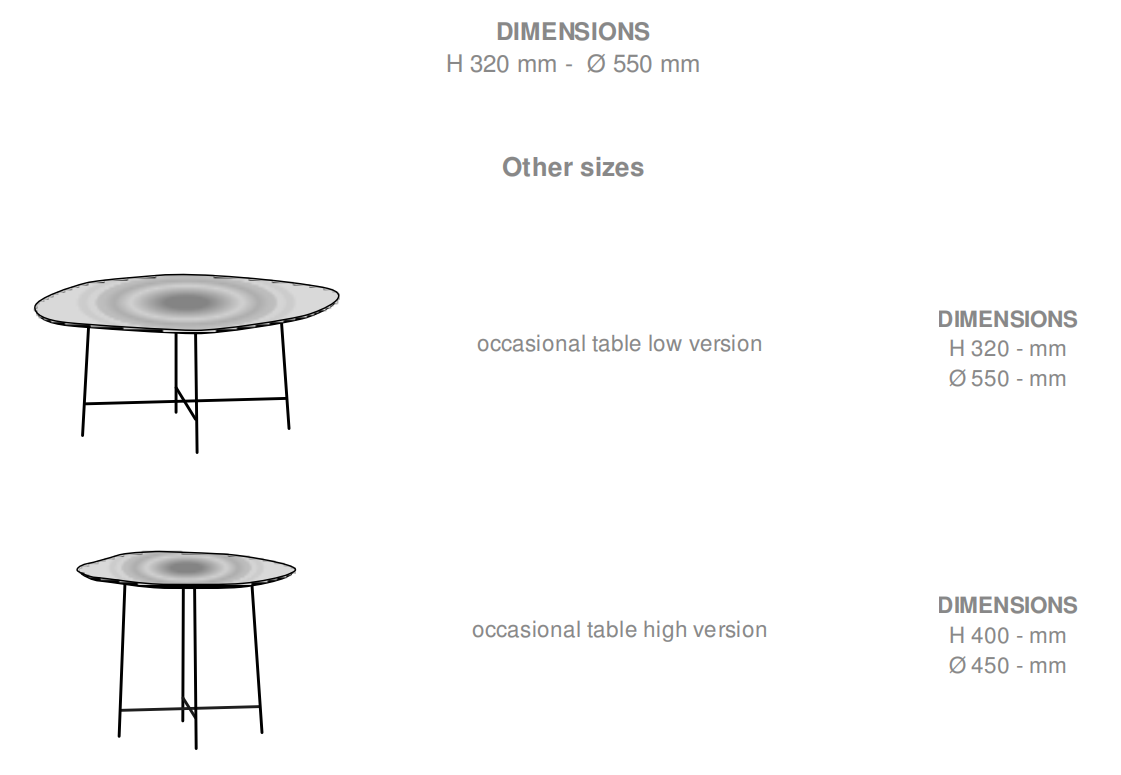 Occasional table with top in transversal cut oak veneer and black lacquered steel base. Given the irregular shape of the top it is possible that the able may differ slightly from the maximum dimensions quoted above.