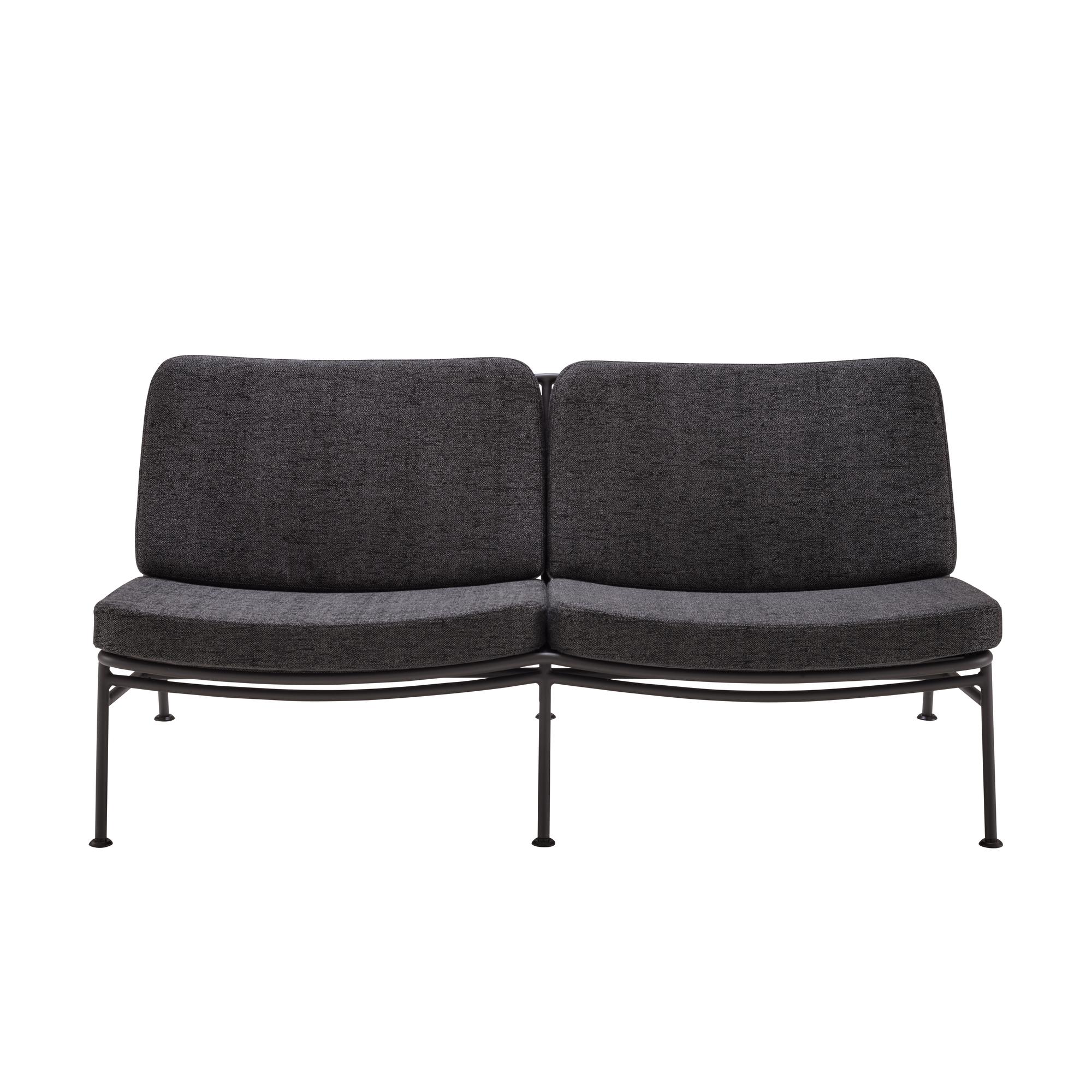 Backpack, the collection of seating designed by the LucidiPevere design studio, has a brand new look. Now with lesser dimensions than it had at its first outing in 2017, it is available in an indoor or outdoor version. Consisting of a 2-seat settee, armchair and footstool, this collection makes a real design statement. There is a complementarity between the various materials used: the structure in charbon-lacquered aluminium and the seat covered in a technical fabric show to best effect its informal lines and welcoming, ergonomic curves. Central to this creation are the colours, always sombre, which are evocative of walks in the countryside. Finally, the soft cushions made using specific fabrics serve to augment the sense of comfort. A range which surprises as much by its simplicity, evident at first glance, as it does by its lightness, which is not only visual but also real.