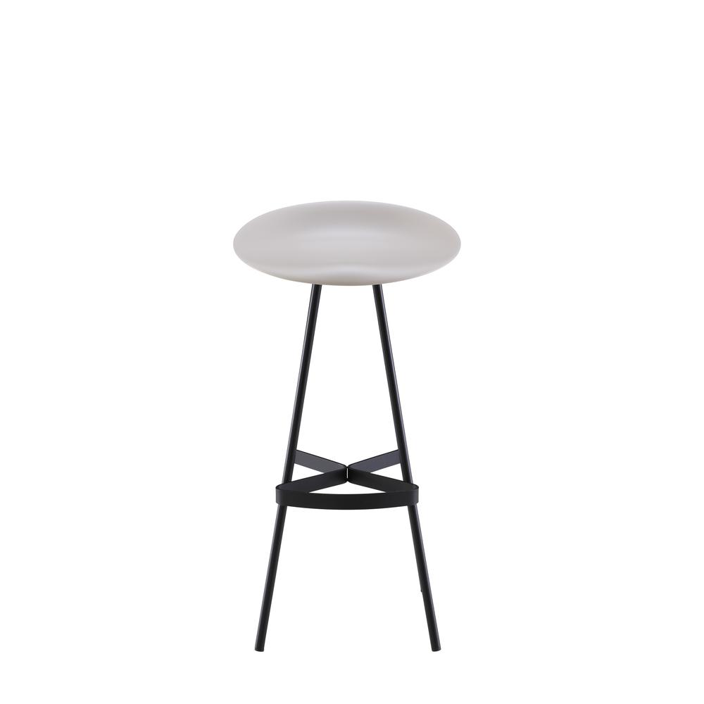 lacquered steel and seat shell in satin-finish moulded polyurethane (colour lacquer : chocolat, brique or argile). Footrest is 20 cm from the floor. The distance between the seatand footrest is 41 cm. Fixed stool with structure in satin black lacquered steel and seat shell in satin-finish moulded polyurethane (colour lacquer : chocolat, brique or argile). Footrest is 31 cm from the floor. The distance between the seatand footrest is 41 cm. Piston stool with seat shell in satin-finish moulded polyurethane (colour lacquer : chocolat, brique or argile). Chromed metal structure and brilliant-chromed footrest. The dimensions and seat height indicated above correspond to the seat in its highest position. In its lowest position the overall height is 63.5 cm and the seat height is 55.5 cm. The distance between the seatand footrest is 40 cm.