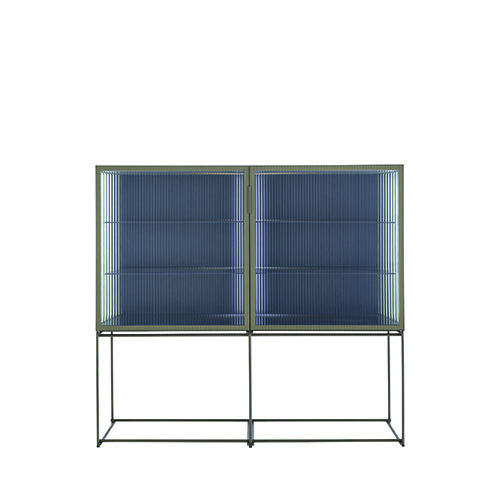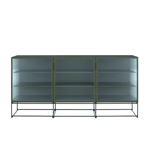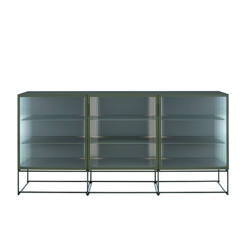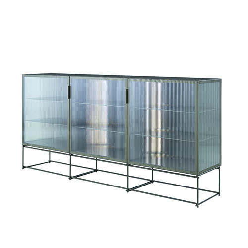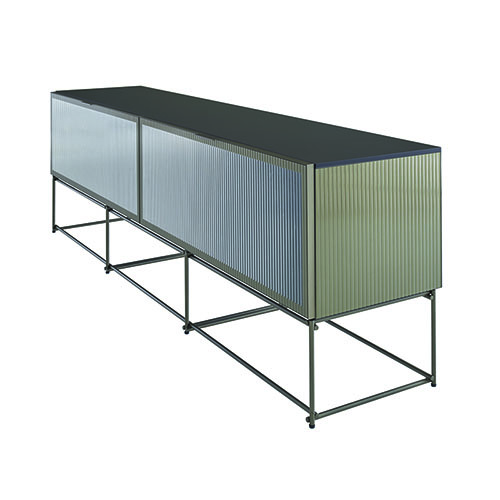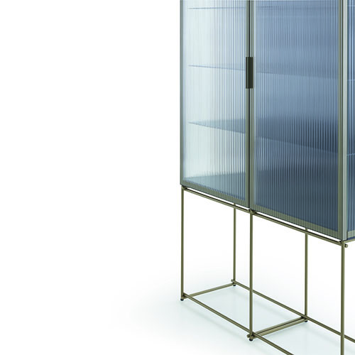 卡納雷托玻璃家具系列構(gòu)成了非常獨特的微系列產(chǎn)品。上層部分完全由玻璃制成,側(cè)面和立面由帶間隔線性圖案 的凹槽玻璃制成,交替出現(xiàn)凹陷,例如凹槽和凸脊。這種薄玻璃可以讓您看到里面擺放著物體,甚至伴隨光影您 可以猜測物體的形狀。 青銅色框下方安裝隱形組合裝置,玻璃門與陽極氧化拉絲鋁框架安裝齊平。 內(nèi)部擱板由金屬制成,薄且上漆,并在里側(cè)完全固定于柜子內(nèi)層。 內(nèi)層板布置在擱板之間。它們或用深色胡桃木貼面或上漆。 在這樣的家具中,光線極大地豐富了表現(xiàn)效果,并強化了柜門和側(cè)面的輪廓。兩種家具配有不同的照明裝置: 玻璃柜中,在四層內(nèi)層處裝有四個垂直向的熒光燈,散光燈罩霧化處理后熒光燈既不炫目,關(guān)閉時也具有觀賞 性。帶有遙控器和調(diào)光器的款式還可以降低光線強度。 餐邊柜和雙門高儲物柜,間接照明來自垂直面的背面—在面板的后邊緣上貼有一條燈帶;它照亮了兩側(cè),并生成 具有極佳視覺效果的內(nèi)部光暈。隔板和內(nèi)層的色彩增加了光線的氛圍;它也可以通過調(diào)光器進行調(diào)節(jié)。 底座是由12毫米的圓鋼制成,并使家具看上去如同竹制建筑,既牢固又輕便。它與頂部形成對比,頂部由青銅色 涂漆,為了與鋁制框架相協(xié)調(diào)。另有底托支架。根據(jù)款型不同,高度為250或500毫米。
