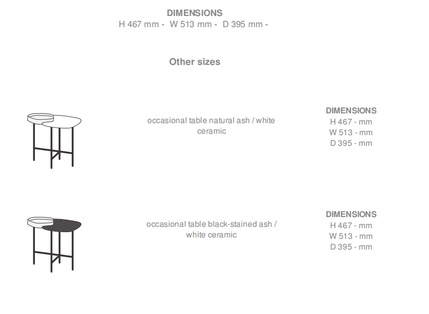 邊桌:(L)51.3 x(l)38.5 x(h)46.7厘米 黑槐木/白陶瓷 白蠟木/白陶瓷