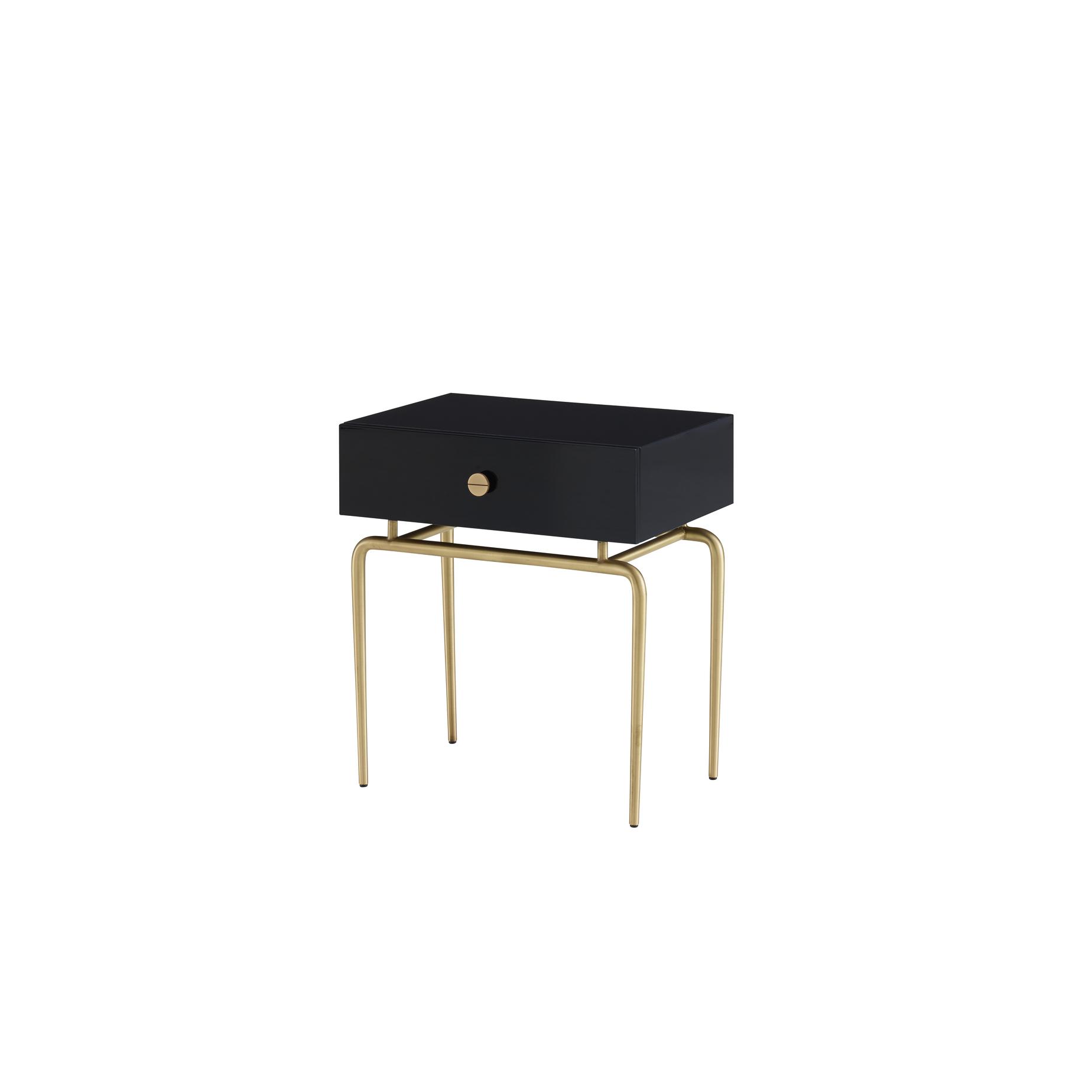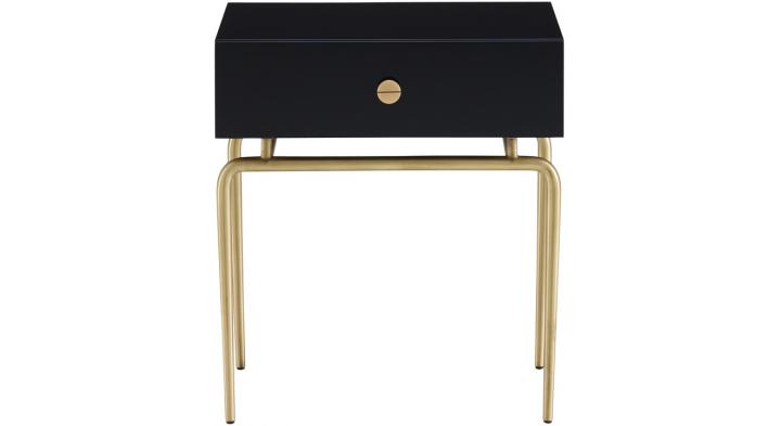 Funny little pieces, attractive and timeless, which will bring a quirky touch to a Haussmannian apartment, a contemporary home or a relaxed second home : this was what Michel Roset was counting on when he decided to put the Débourgeoisée bedside table and console into production. Base and handle(s) in matt brushed brass-coated steel. Chest of drawers in gloss black lacquered MDF. Drawer(s) on invisible runners, equipped with controlled closing.