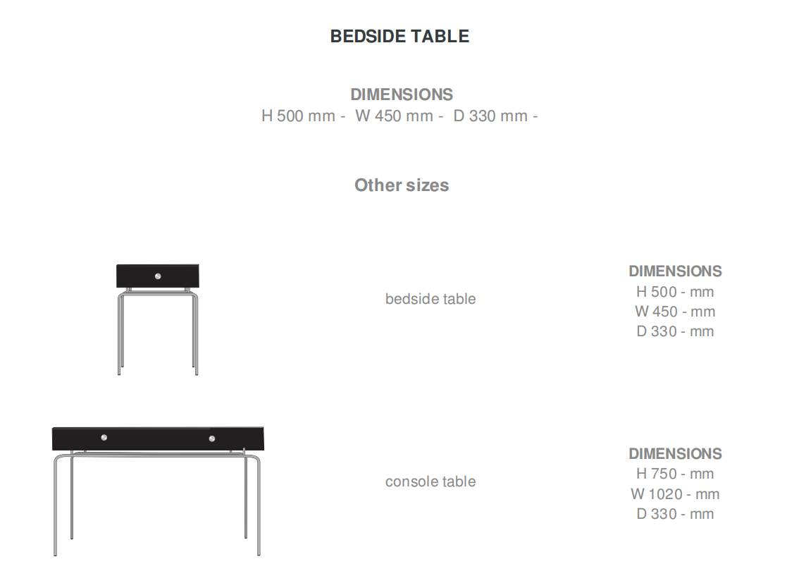 Funny little pieces, attractive and timeless, which will bring a quirky touch to a Haussmannian apartment, a contemporary home or a relaxed second home : this was what Michel Roset was counting on when he decided to put the Débourgeoisée bedside table and console into production. Base and handle(s) in matt brushed brass-coated steel. Chest of drawers in gloss black lacquered MDF. Drawer(s) on invisible runners, equipped with controlled closing.