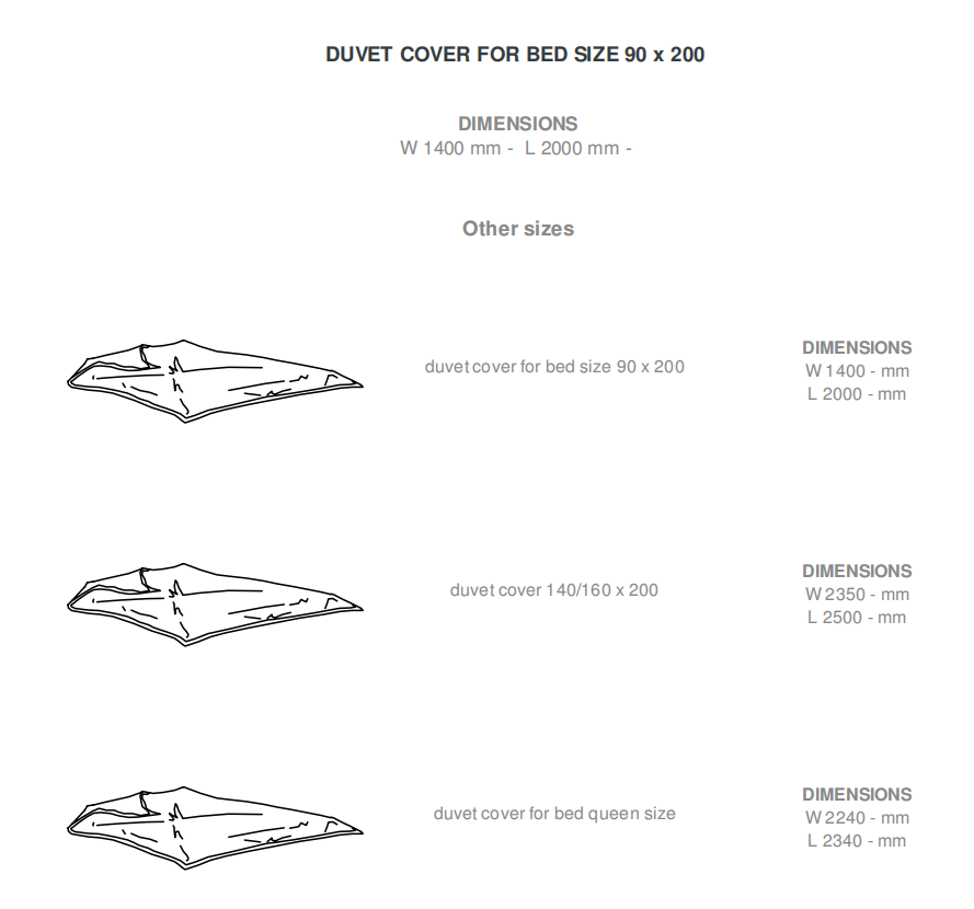 Bedding in white 100 % cotton (130 g/m2). The visible faces of the pillowcases (without flounces( and duvet covers (zip closure) are in 'Pied de coq' fabric; the backs are in white 'Tonalité' fabric (100 % satin cotton - 115 g/m2). The top sheet has a 12 cm hem. Machine washable at 60°. May be bleached using chlorine-based products. Line (drip) dry; do not spin. Medium iron. Dry clean (perchlorethylene).