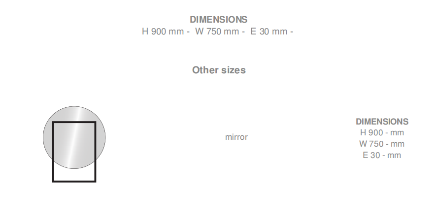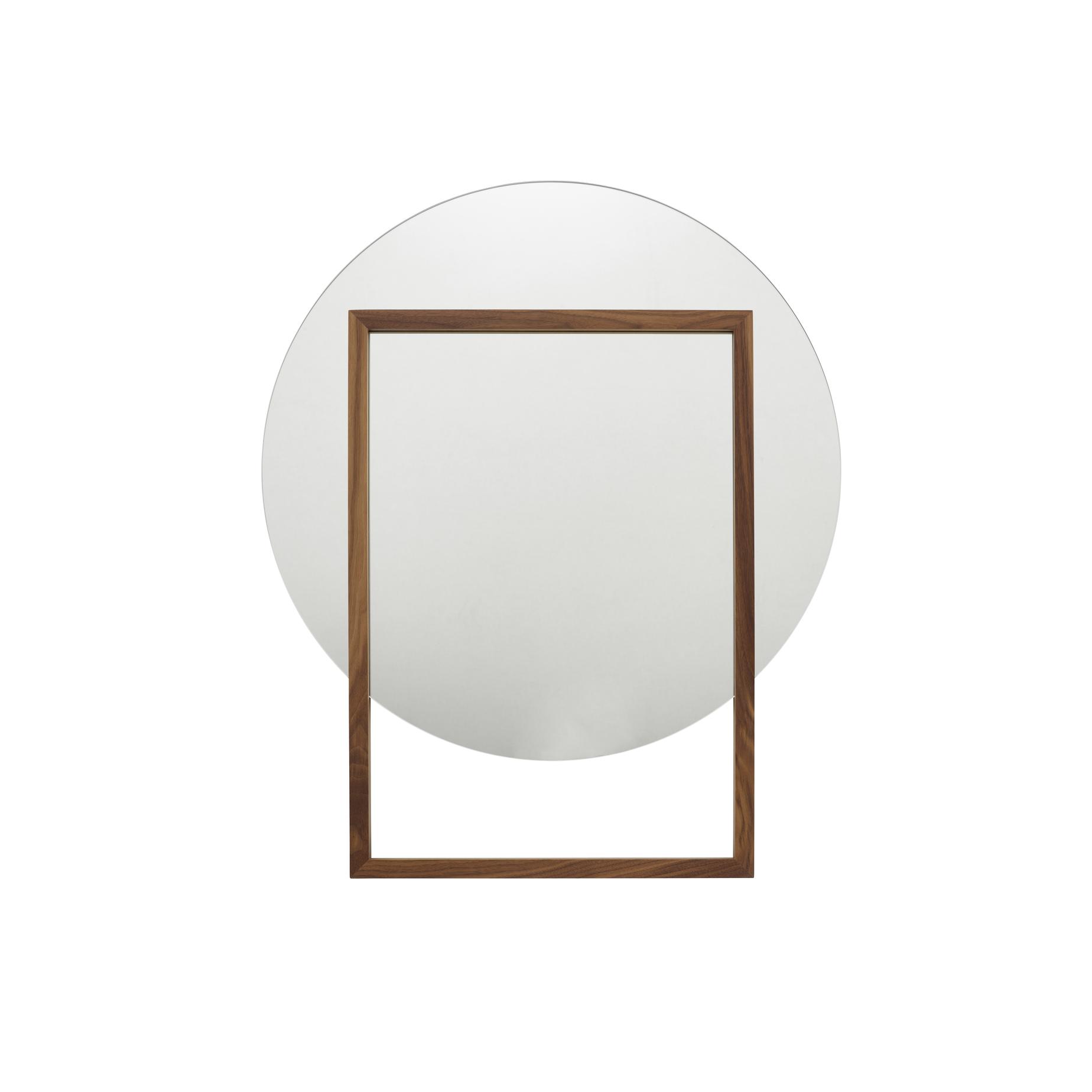 This mirror is composed of a frame in natural varnished solid American walnut, mirrored glass, and a wall fixing batten. It may also be set on a piece of furniture (but nonetheless still fixed to the wall). May only be fixed vertically (with wooden frame overhanging downwards). 2 stoppers are supplied in the packaging: these are to be placed on the bottom of the frame by the customer, if the mirror is resting on a piece of furniture.