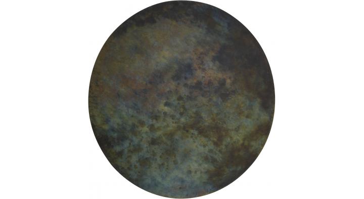 Today, ‘high-end decoration’ fuses design with arts and crafts in a straightforward, uncomplicated way. This timeless luxury has now become furiously trendy. The quest for the exceptional, for that rare piece, responds to a growing need for customization in people’s homes. The OXY FLUID and OXY DROPS panels respond perfectly to this new requirement: the oxidisation process produces a fascinating aesthetic effect on each disc. Corrosion provokes original physico-chemical reactions which are different each time, rendering each item a unique piece. The metal acquires a particular texture and ochre tones, producing a random artistic motif. Available in diameter 60 cm or 80 cm, with linear or embossed motifs, these are objects of singular charm and high decorative value. Attached to the wall via an MDF bracket.