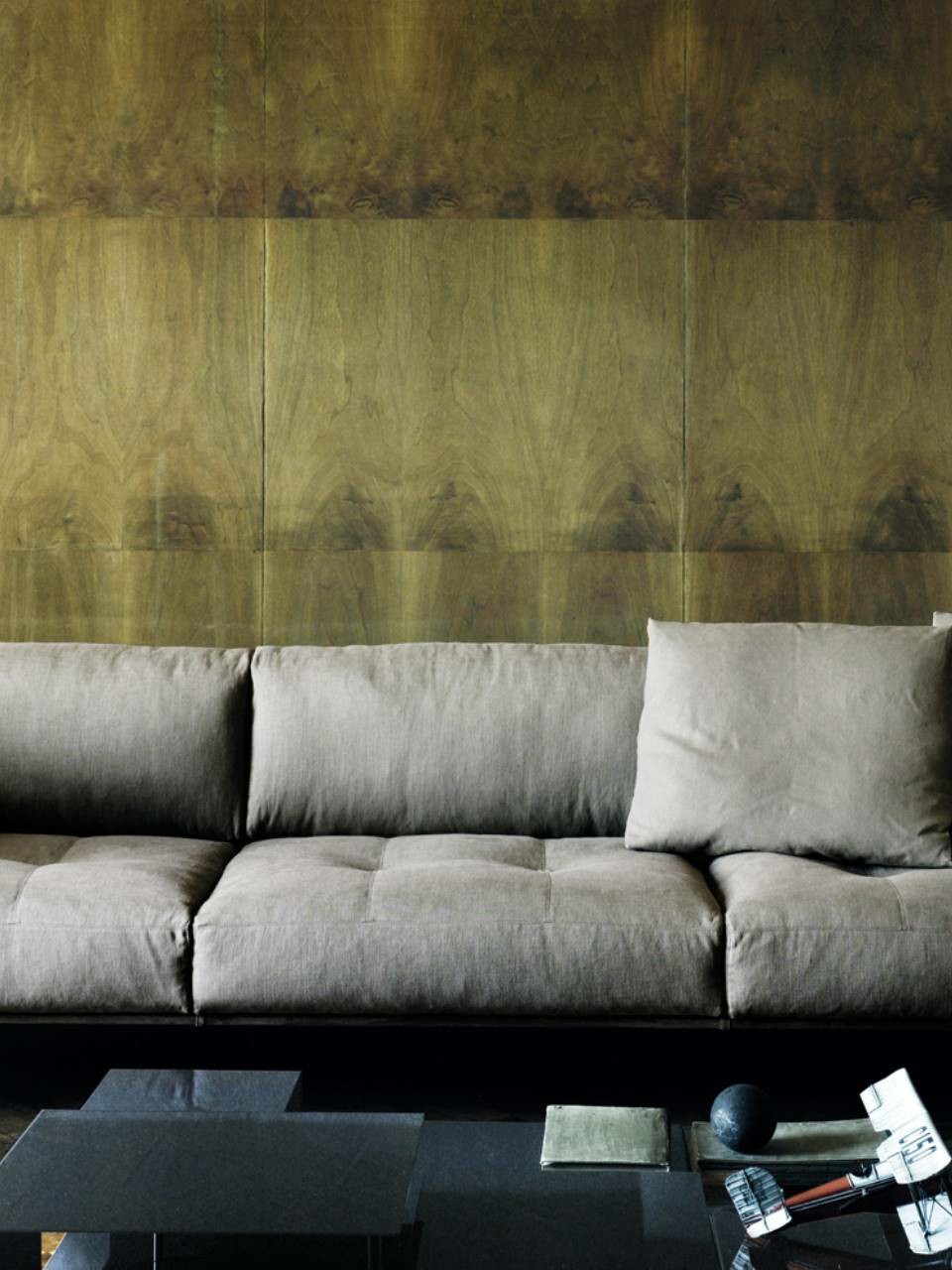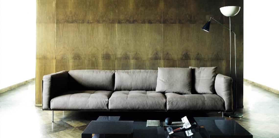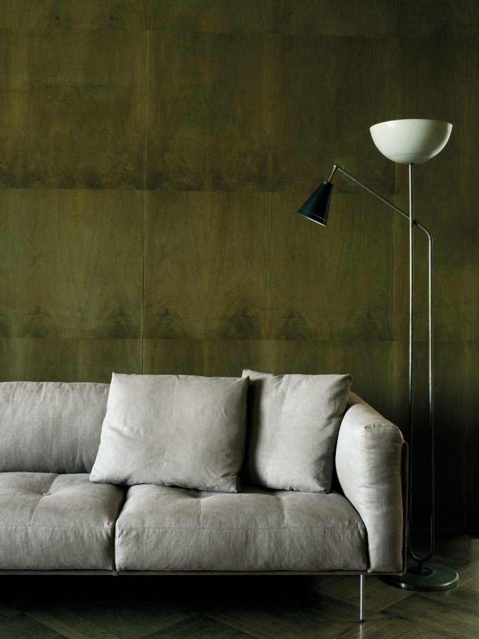 Sofa, armchair and bench. Supporting structure in lacquered  drawn tubular steel, seat sprung with coated rubber elastic  straps and polyurethane foam. Backrest and armrest structure  in self-supporting decorative HPL panel. Covering in 100%  polyether, thermally bonded onto a polyamide velveteen backing.  Backrest and seat cushions in prewashed and sterilized goose  down, with polyurethane foam insert. The seat cushions are  quilted with buttons at sight or, on request, quilted without  buttons. Armrest cushions in polyurethane foam covered  with prewashed and sterilized goose down, with a poplar  plywood supporting panel fixed to the frame by plug-in hinges.  Stainless steel feet, polished or matt satin-finish, screwed to  the base with a bushing. Fabric or leather upholstery, both fully  removable by zippers and Velcro fastenings.  Seat depth 60-80cm.  Rod and Rod XL have undergone and passed the Tests:  seat and back static load and fatigue, front and side legs  static load, and drop test (EN 1728:2000), with issue of relative  certificate by CATAS?.