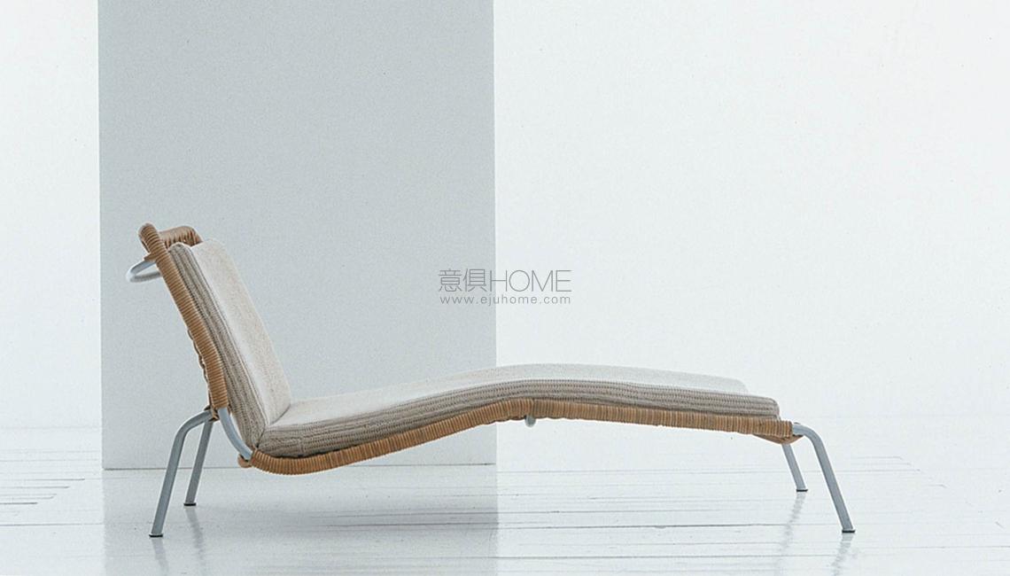 Armchair and chaise longue available for indoor and outdoor. Padded armchair with supporting frame in steel with chromedplated finish or epoxy powder coating gunmetal color, RAL-K7 9010 white or 9017 black and, on request, AISI 316 stainless steel with matt satin-finish. Metal chassis embedded in cold- expanded polyurethane foam with covering in 100% polyether thermally bonded onto a polyamide velveteen backing. Back and seat cushion with performed polyurethane foam structure, covered with acrylic fibre layers. Quilted fabric or leather upholstery. The fabric version is fully removable by zippers and Velcro fastenings after unscrewing the chassis from the supporting frame. Woven armchair and chaise longue. Indoor: supporting frame in AISI 316 stainless steel with matt satin-finish, steel with chromed-plated finish or epoxy powder coating gunmetal color, RAL – K7 9010 white and RAL –K7 9017 black. Woven with hide, hempen rope, leather Scooby (braided leather trim), PVC profile or in cellulose cord in the colours available in the collection. Supporting cushions in polyurethane foam covered with acrylic fibre layers and fabric or leather upholstery. Outdoor: supporting frame in AISI 316 stainless steel with matt satin-finish. Woven with PVC profile, in the colours available in the collection. Supporting cushions in open-cell structure polyurethane foam for outdoor, coated with fiber for outdoor. Upholstery with outdoor fabrics only. Cushions’ upholstery, in both versions, fully removable by zippers. Seat depth 51-60cm. The supporting frame of armchair Frog in stainless Steel AISI 316, has undergone and passed the corrosion test (UNI ISO 9227:93) with issue of relative certificate by CATAS?.