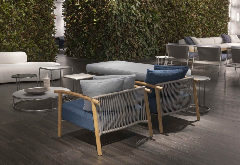 An object that evokes nature and open space, an armchair that conveys a sense of lightness and naturalness thanks to a wooden structure, a measured but distinctive character.