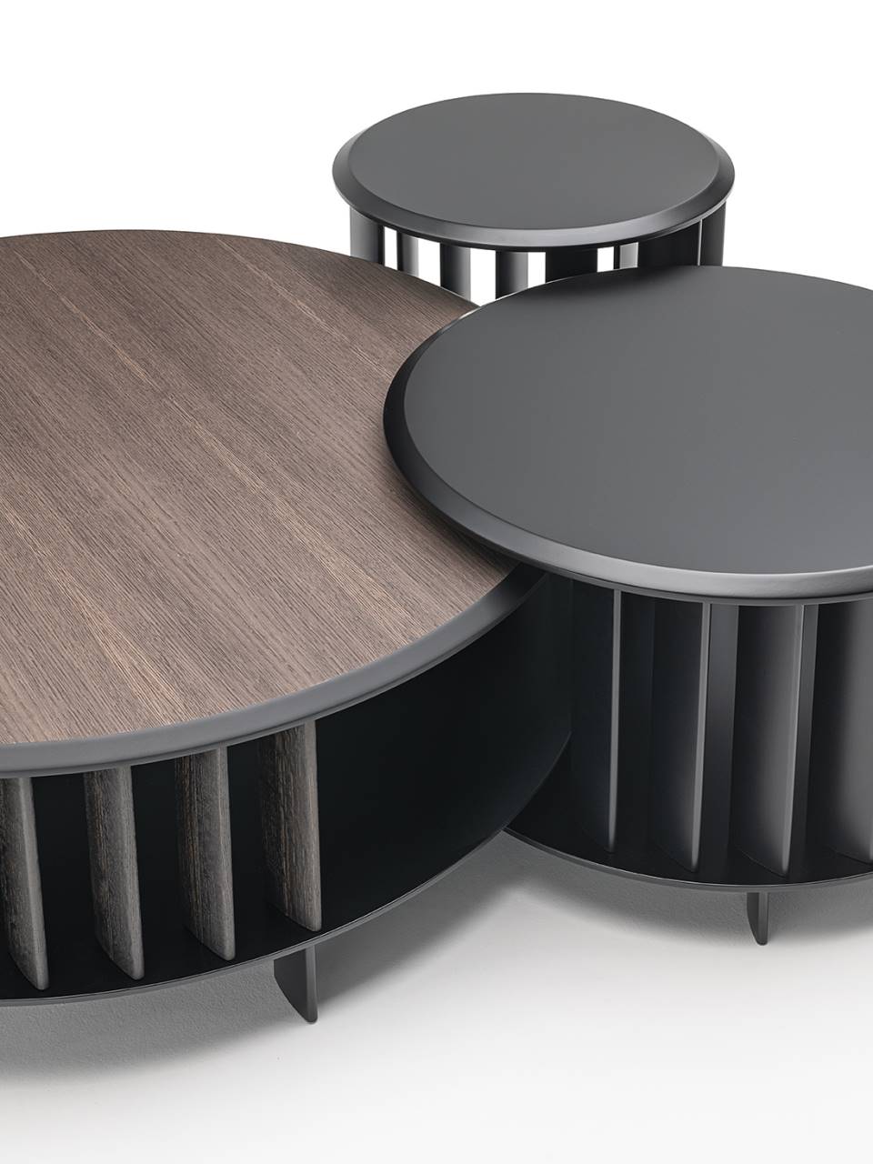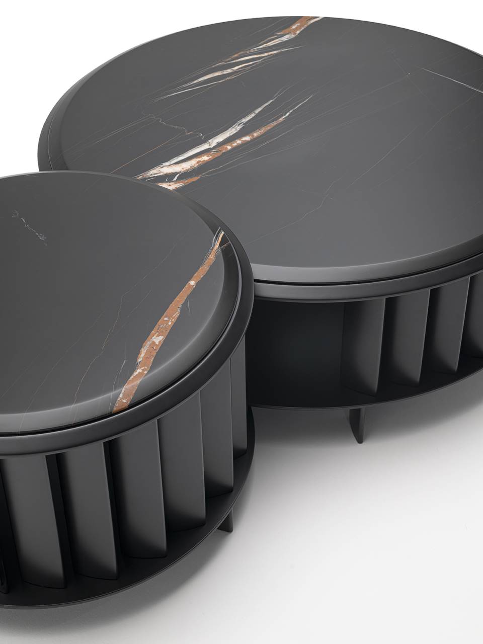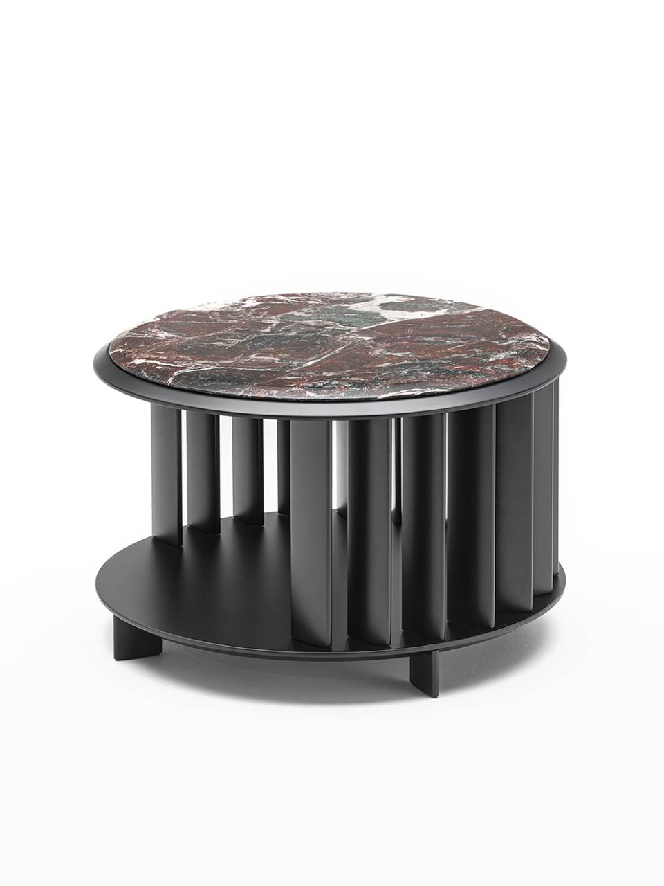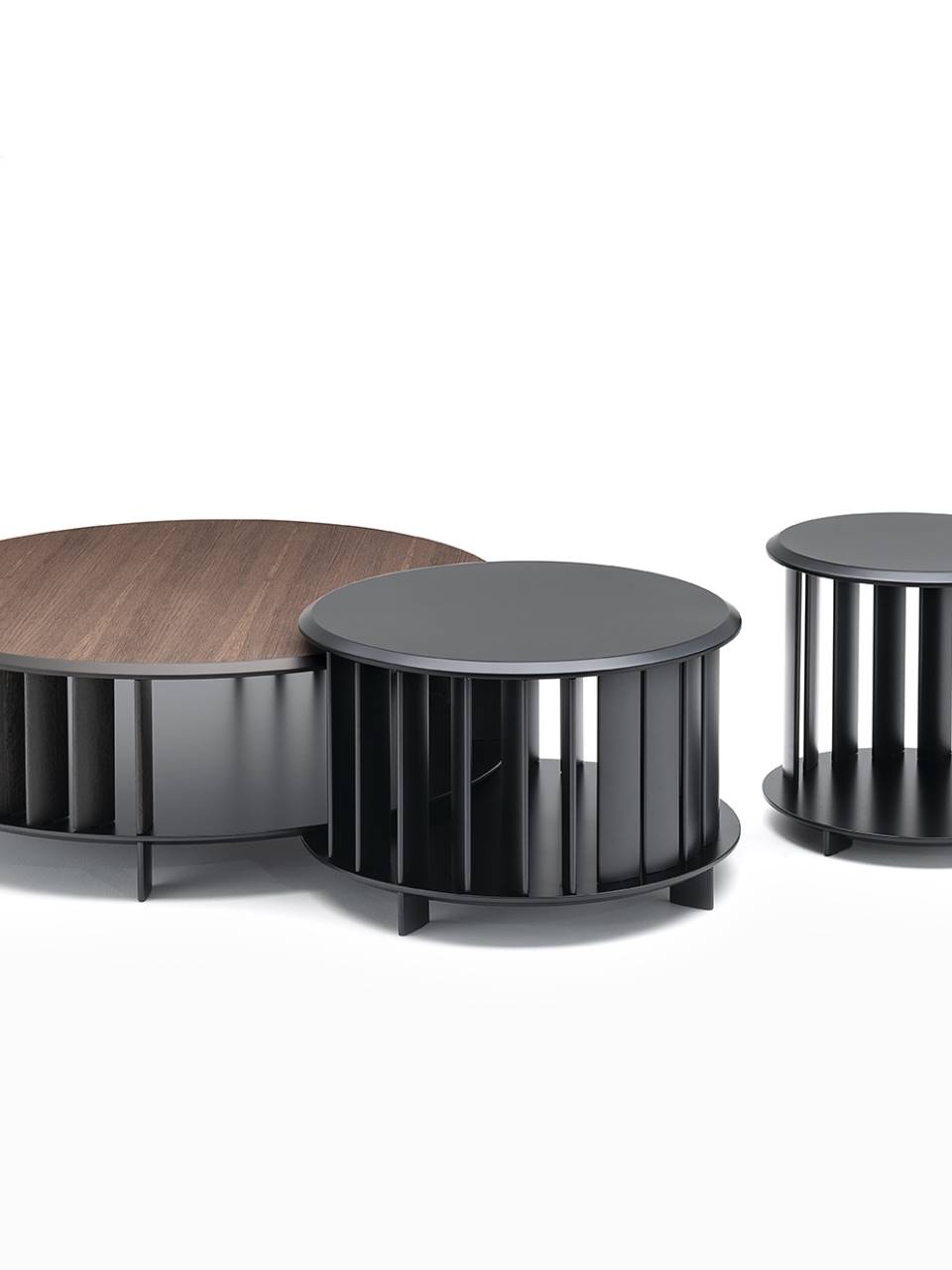With top available black lacquered, in marble or veneered in wood and a perimeter of pirouetting slats, which turn them into practical containers, Islands Low Table decorate both residential and contract spaces in the name of a luxury that speaks of the past, proving to be contemporary.