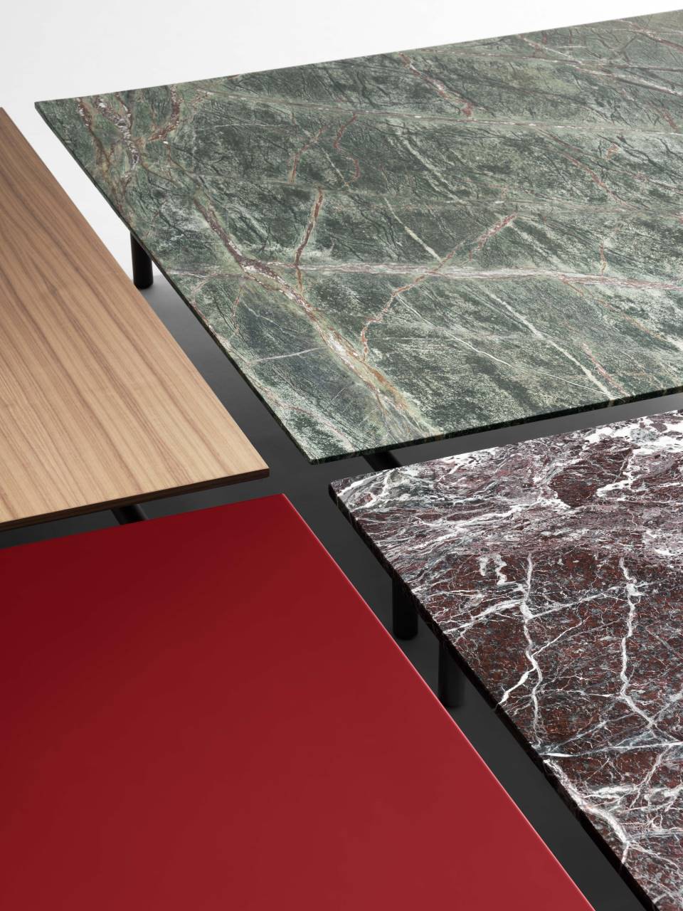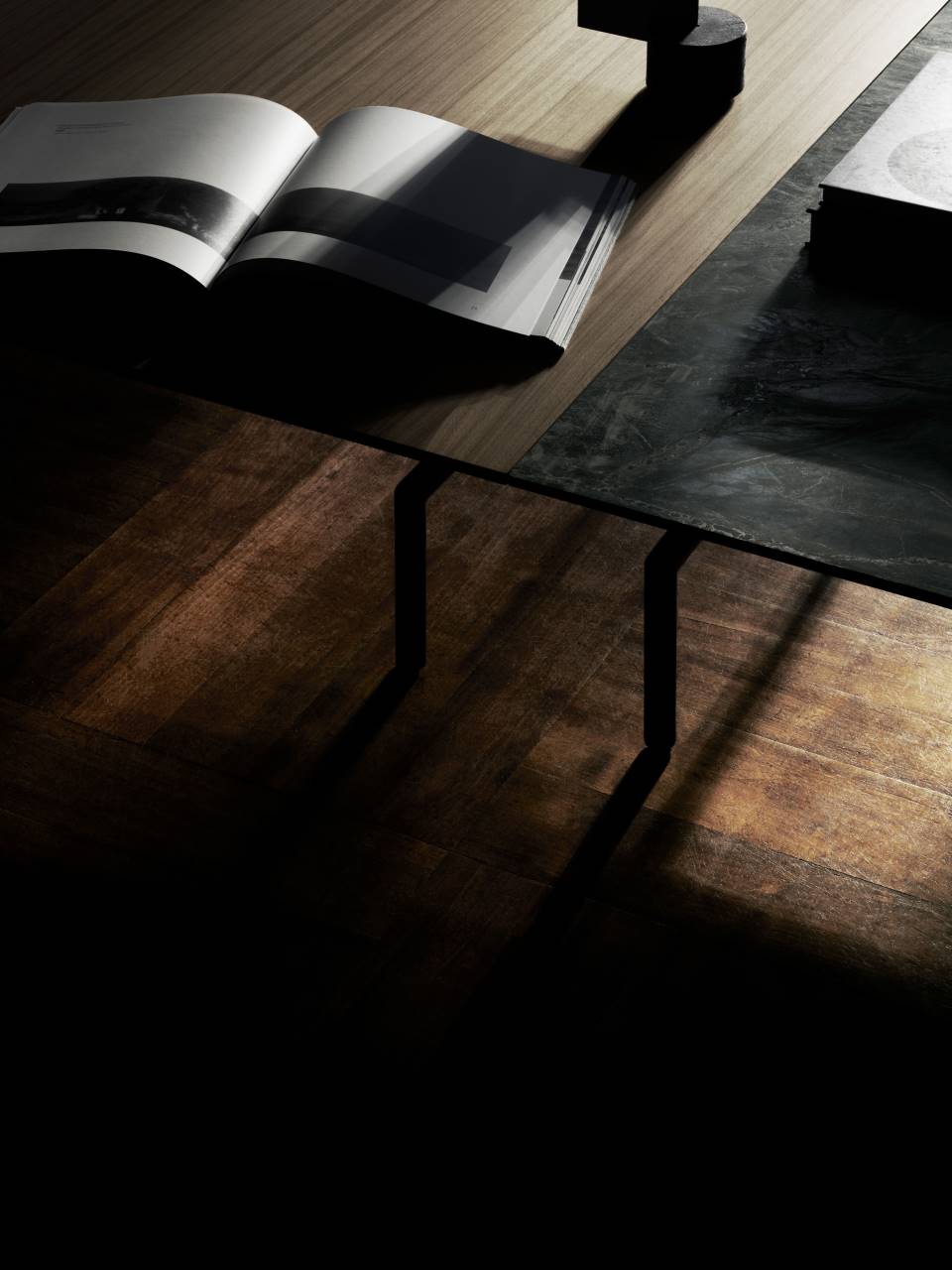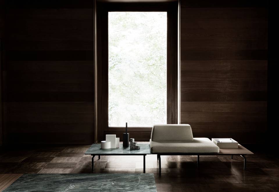 The Sumo low table available in wood or marble, invites to rediscover the pleasure of materiality through refined plays of juxtapositions.