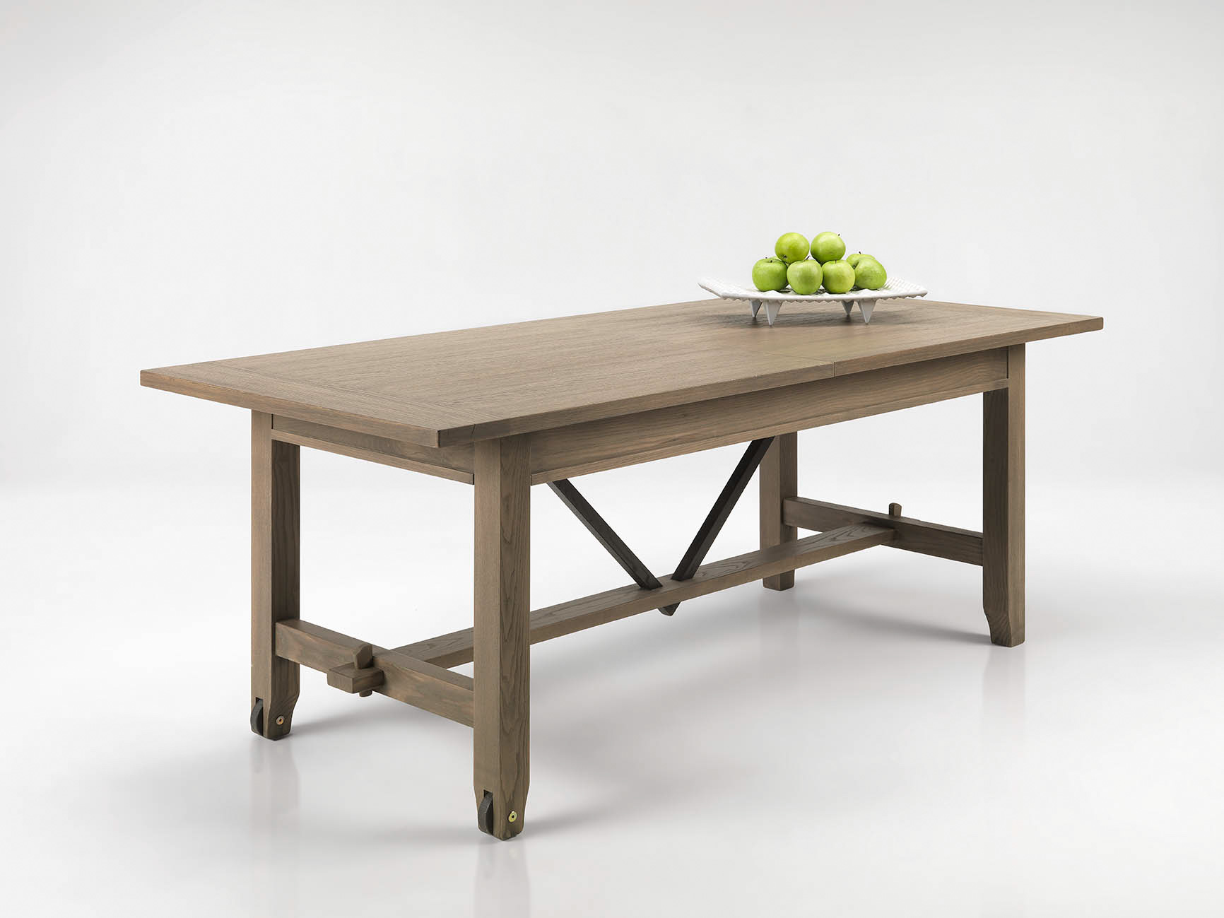 The Rotella rectangular table, featuring clean and essential lines, intentionally recalls a work desk. Handcrafted in oak wood, this table features 2 wooden wheels making it easy to move.
