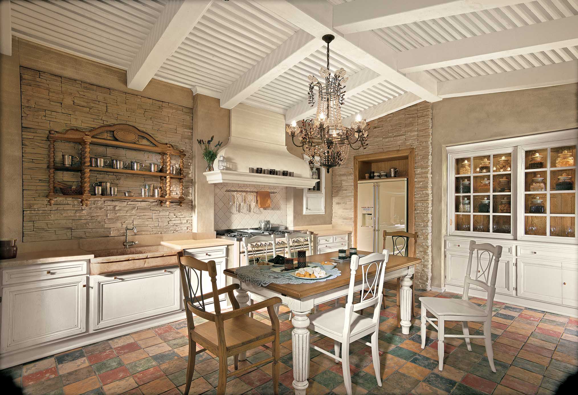 Country kitchens of Old Style collection recall the typical shapes of country settings and give the heart of the house a warm atmosphere characterized by precious design furniture together with materials and details of the typical venetian tradition.