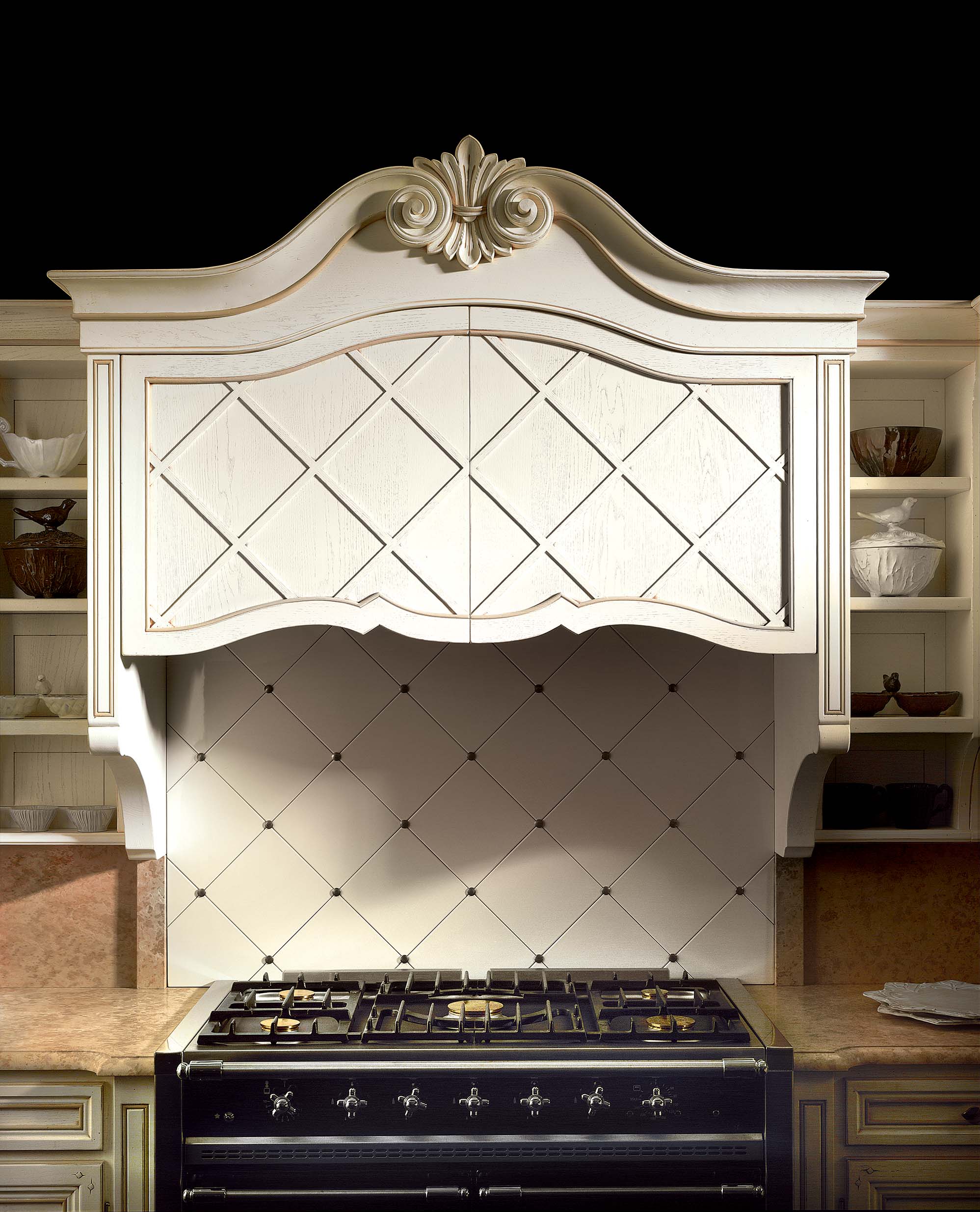 As any L’Ottocento kitchen, Monterey is customizable as per its colours, dimensions, structure and decorative details. Different hood models are available, according to any personal taste and design concept, to be matched to the cooking top.