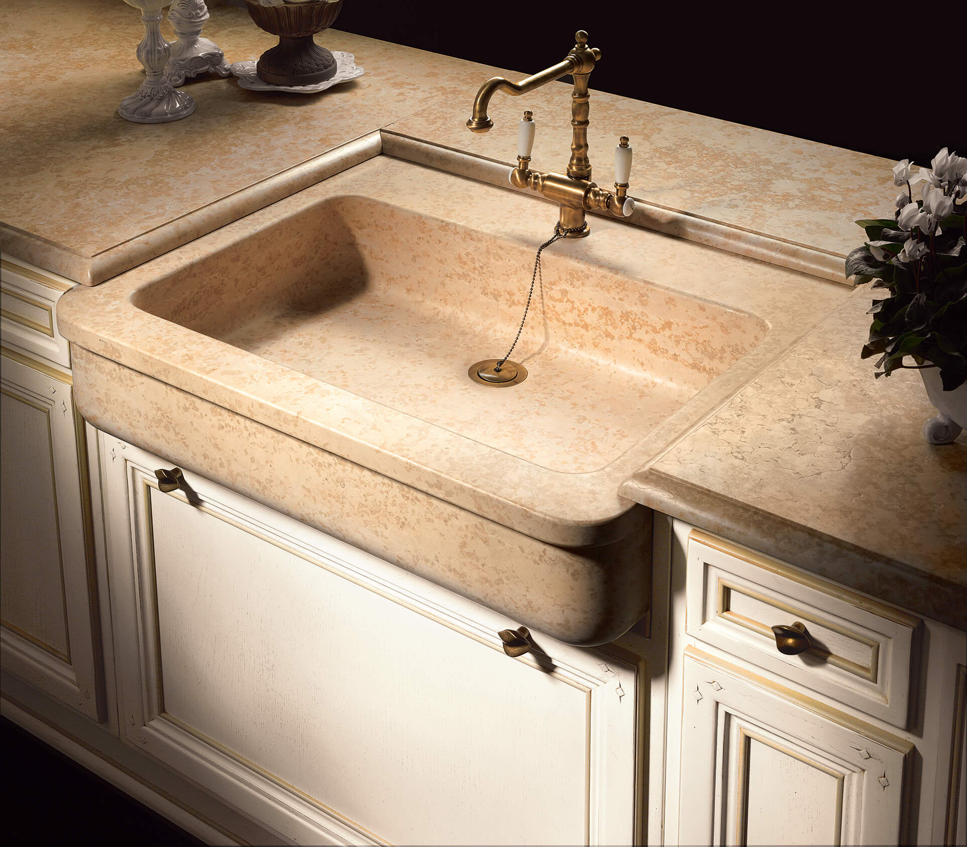 Natural materials like marble, are skilfully tailored and used for worktops, splashback or wide sink to highlight the spirit of Monterey expressing character through their intense texture.
