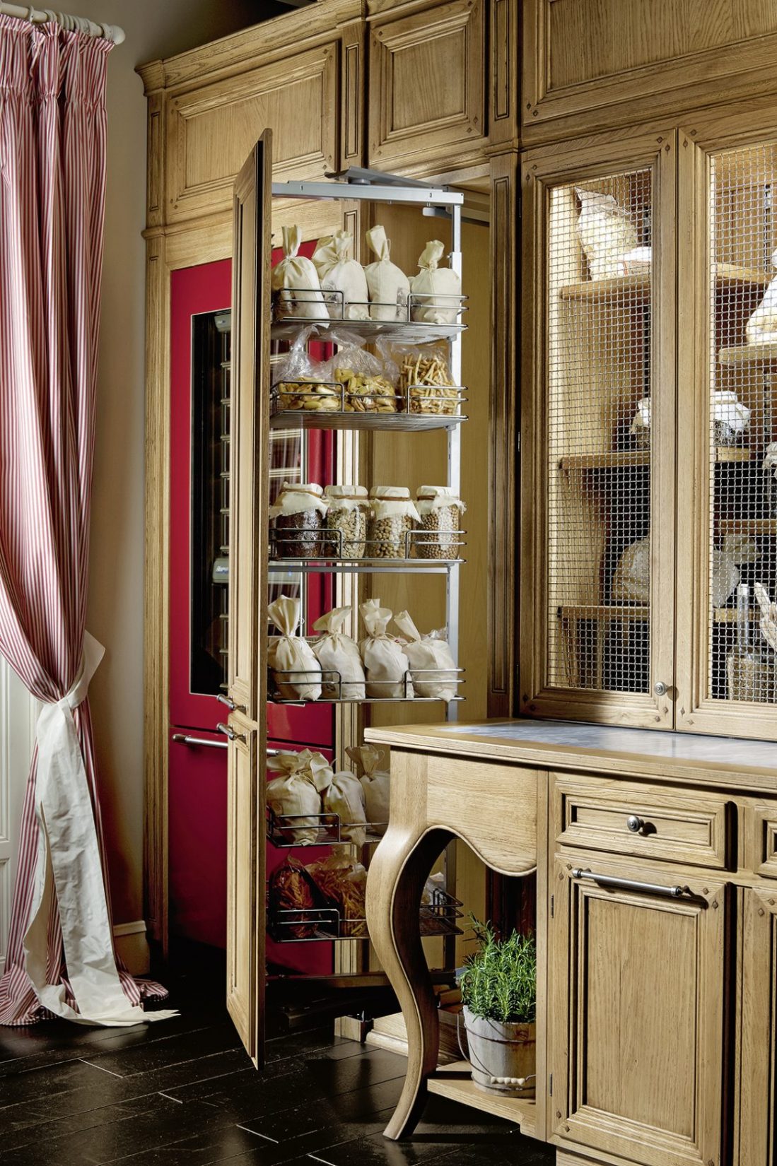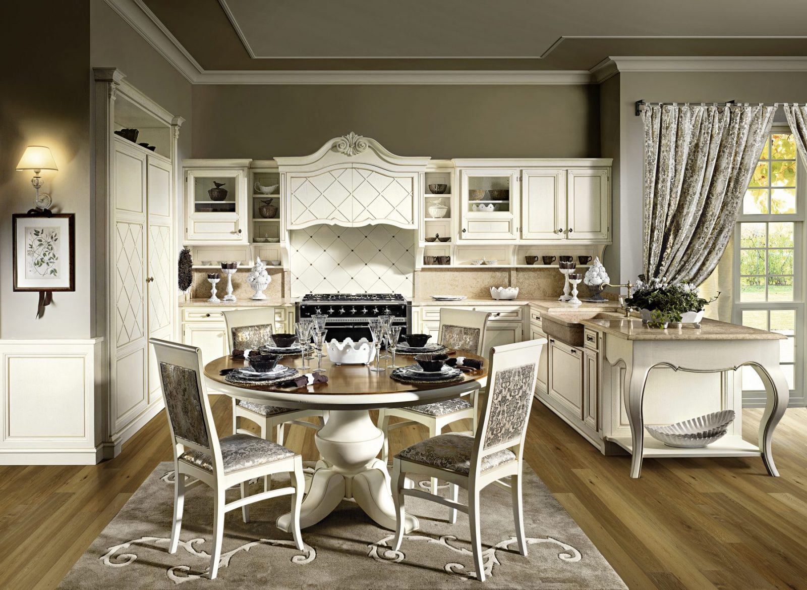Elegant proposal of Monterey kitchen recalls precious classic accents as handicraft craving and the wooden decors matching them to traditional material and creating a concept of warm atmosphere.