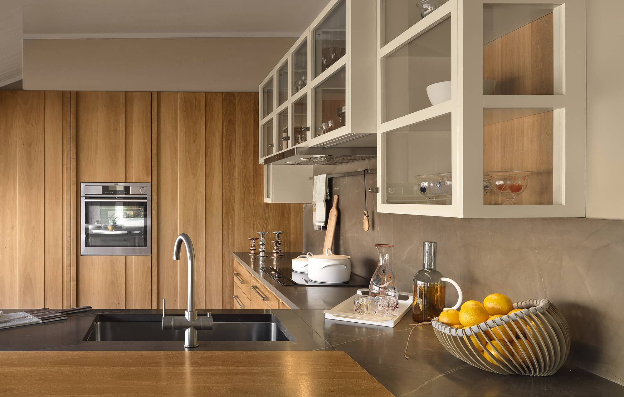 Modular design is the key concept of Evita compositions which support a wide, pleasant and warm way of living the kitchen, organizing kitchen spaces according to any desire.