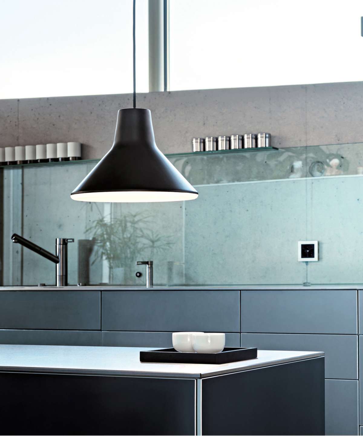 A suspension lamp with a Fifties silhouette. Designed by the Danish studio Goodmorning Technology, it suggests the emblematic formal rigor and functional minimalism of the legendary Danish Modern tradition. A timeless classic that combines high technology and innovative light diffusion with simple lines and clean forms, ideal for both classic and modern settings.